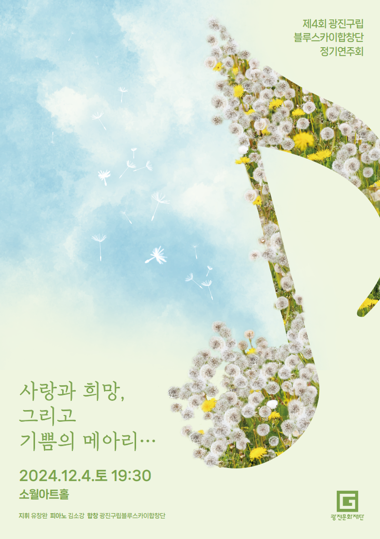 2020년에 창단하여 합창 활동을 통한 심신의 치유, 예술과 함께하는 생활을 몸소 실천하고 있는 광진구립블루스카이합창단은 12월 4일(수) 소월아트홀에서 제4회 '사랑과 희망, 그리고 기쁨의 메아리...' 정기연주회를 연다.
