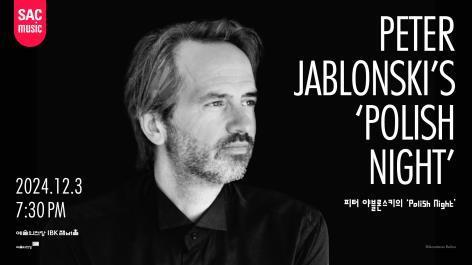 [플레이뉴스 문성식기자] 예술의전당(사장 장형준)은 오는 12월 3일 IBK챔버홀에서 2024 SAC 월드스타시리즈 – Piano Special 세 번째 무대로 '피터 야블론스키의 Polish Night'를 개최한다.