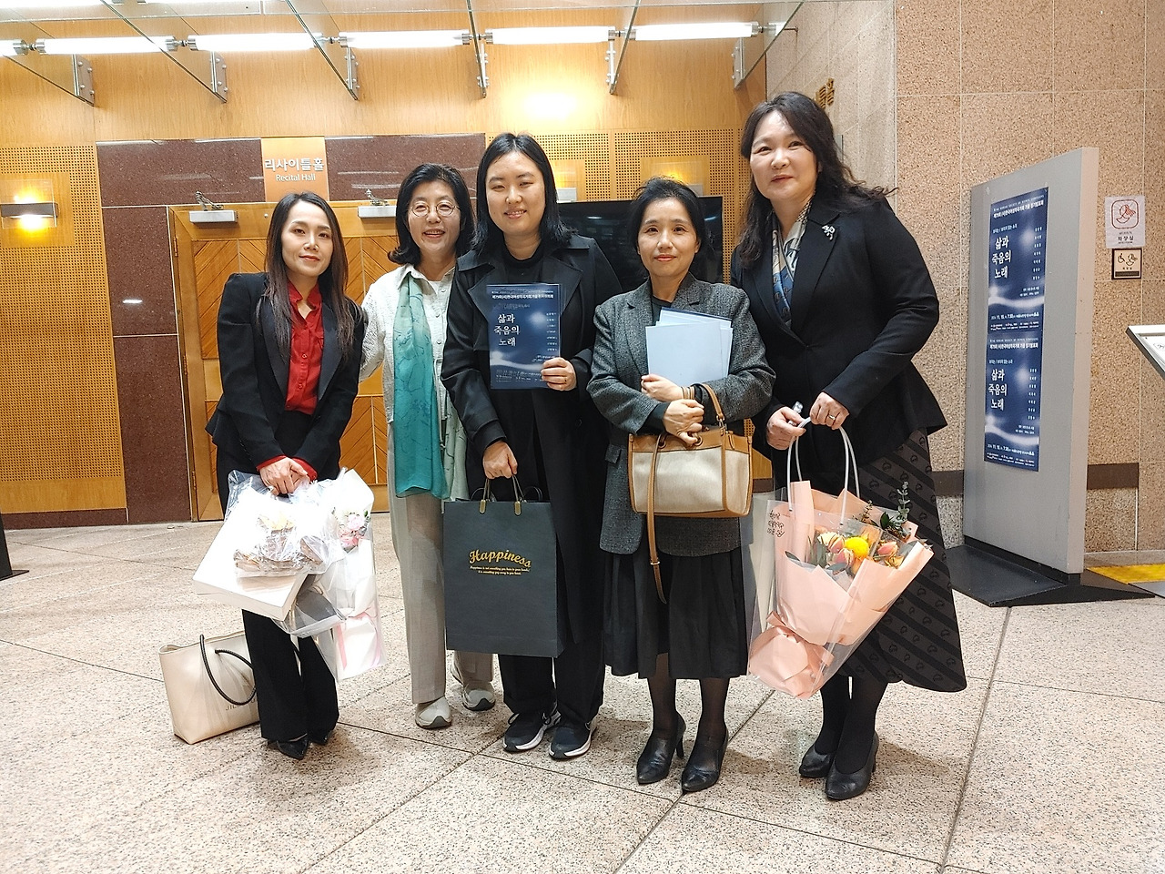 공연후 무대인사하는 보컬콘서트 서울 성악가들과 지휘자 홍충식, 반주자 김연주, 이귀숙, 오세린, 김은영, 유호정, 이혜성, 정현수, 장선순 작곡가.