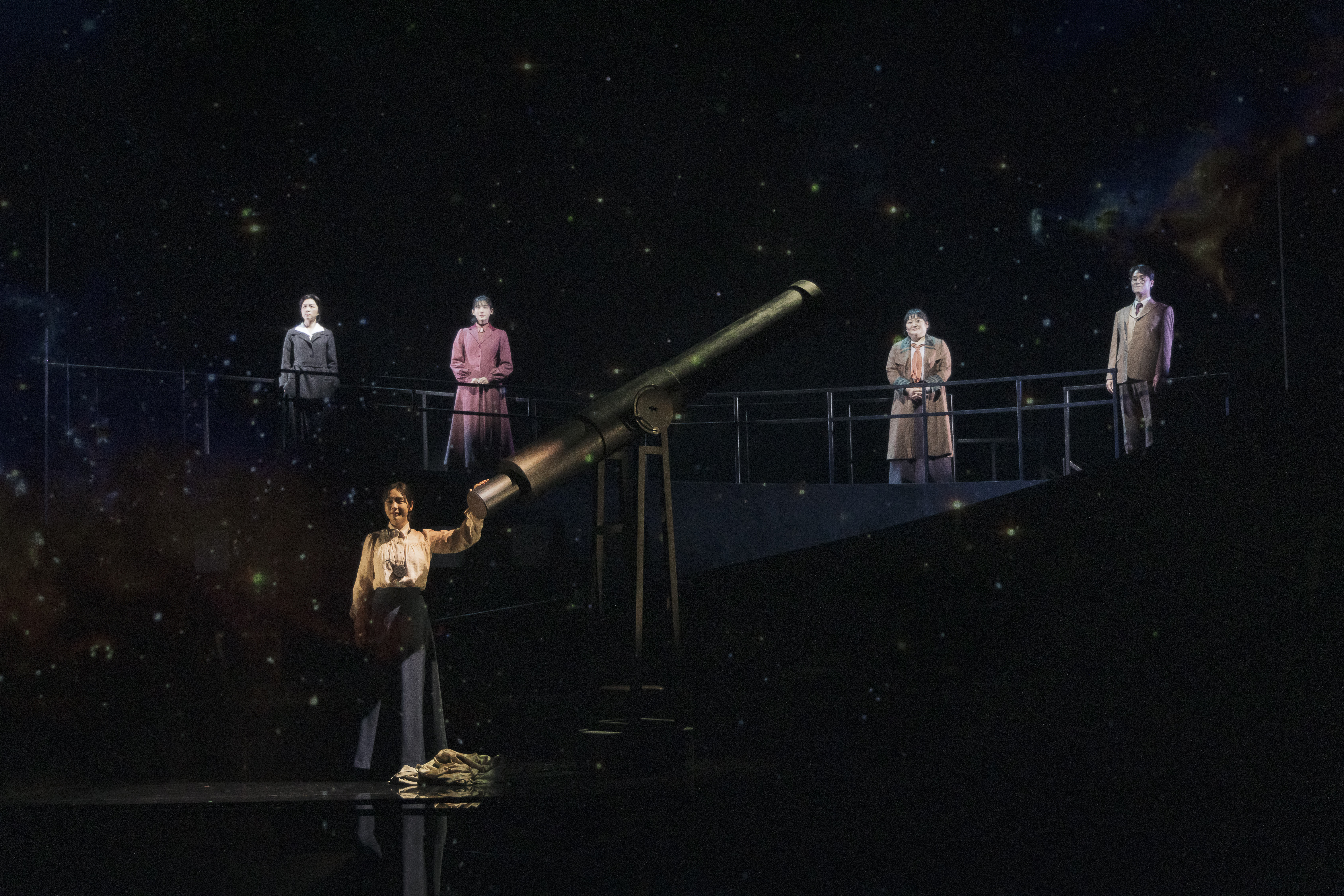 이어 하버드대학 천문대의 뛰어난 광도 측정가 ‘윌러미나 플레밍’ 역은 연극 '이갈리아의 딸들', '피와 씨앗', '3월의 눈' 등을 비롯해 드라마 '정숙한 세일즈', '우리들의 블루스'로 대중의 시선을 사로잡은 배우 박지아가, 항성 분류법의 기준을 마련한 ‘애니 캐넌’ 역에는 2024 국립극단 시즌 단원이자 연극 '활화산', '당신에게 닿는 길', '보존과학자' 등을 통해 묵직한 연기 내공을 선보였던 배우 조승연이 각각 맡아 눈을 뗄 수 없는 존재감으로 무대 위를 물들인다.