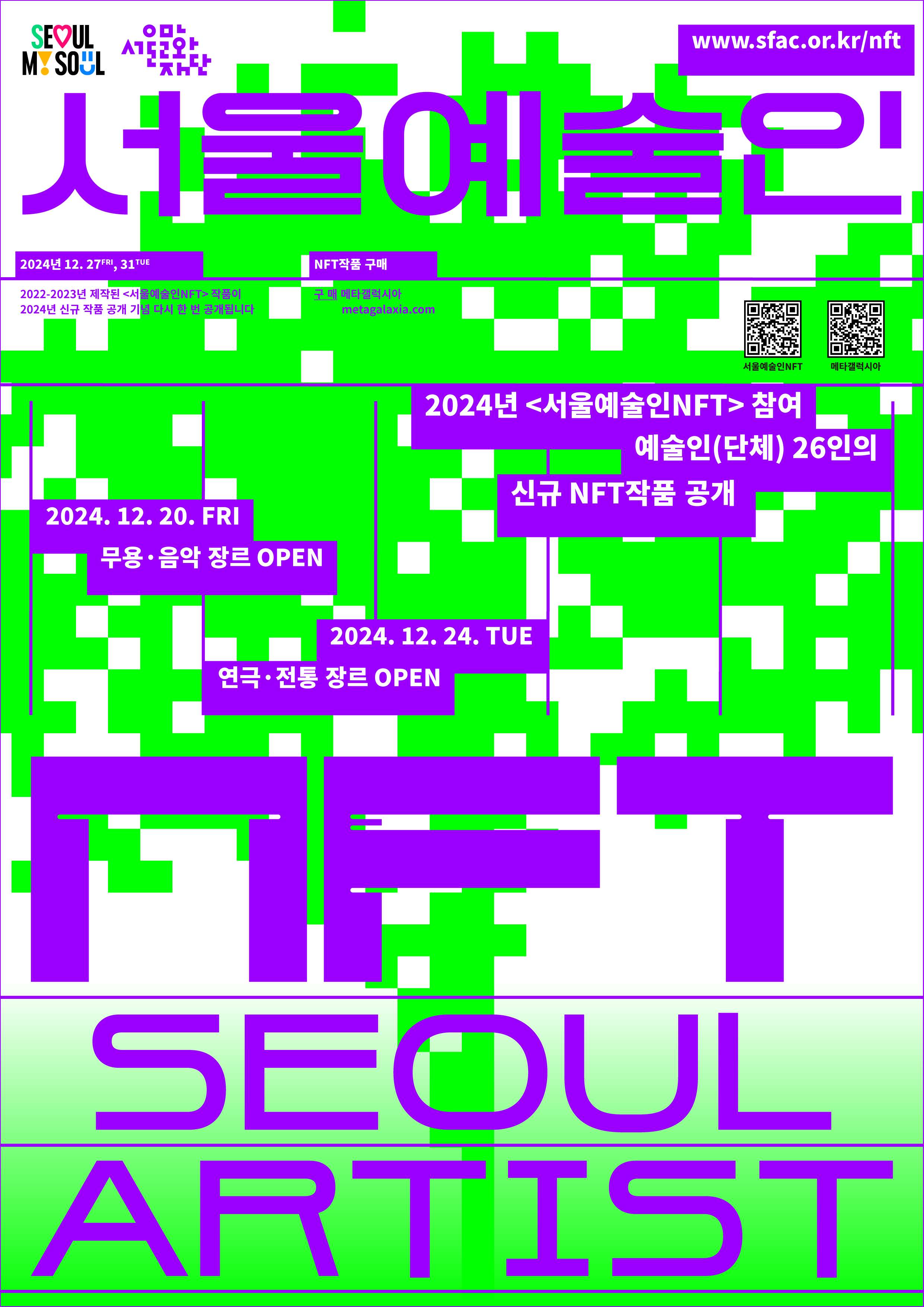 '서울예술인NFT'는 공연예술 4개 장르(연극, 무용, 전통, 음악) 예술가의 예술적 가치를 담은 영상, 사진, 모션 등을 NFT로 발행하여 그 희소성과 고유성을 디지털 문화유산으로 보존하고 부가가치 창출을 지원하는 사업으로 이번 해 3년차를 맞았다.