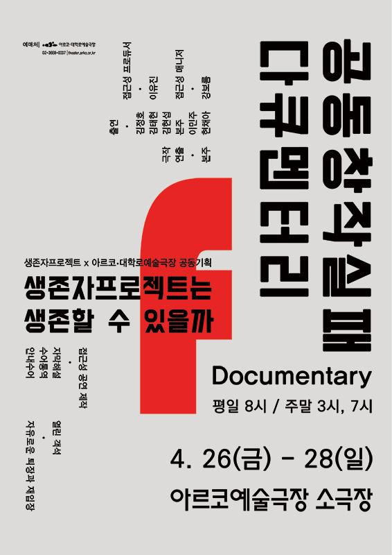 | 공동창작 실패 다큐멘터리: 생존자프로젝트는 생존할 수 있을까 | 4/26(금)~28(일) 아르코예술극장 소극장 |
