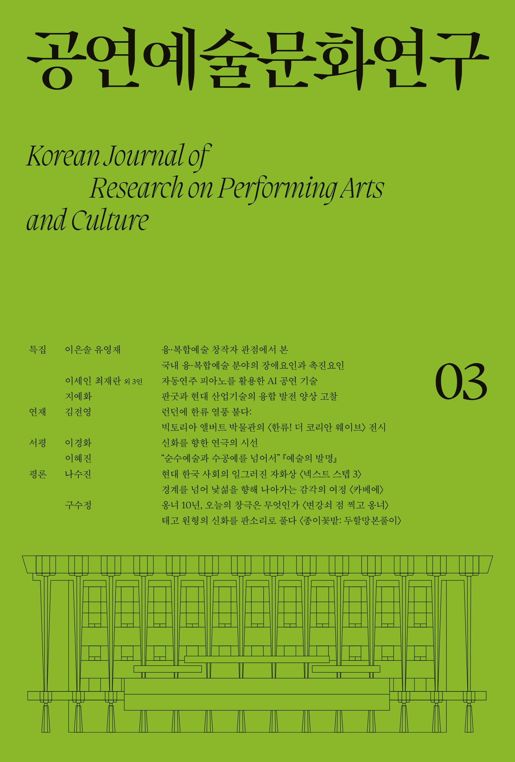 「공연예술문화연구」는 공연예술학과 박물관학 담론부터 학제 간 융합 연구까지 아우르는 학술지다. 당대 공연예술 관련 연구 결실과 학문적 논의를 담아내기 위해 2022년 창간했다.