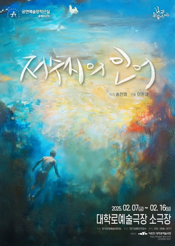 | 연극 | 저수지의 인어 | 2024 서울신문 신춘문예 희곡 당선 작가 송천영과 연출 이원재 신작. 자신이 쓴 글에 유일하게 몰두하고, 자신과 닮은 ‘인어 부자(父子)’ 이야기를 통해 위로와 용기를 얻는 주인공을 통해 허무와 외로움, 실체 없는 불안으로 희망을 잃은 이 시대 젊은이를 대변. ※ 2023 창작산실 대본 공모 선정작 |
