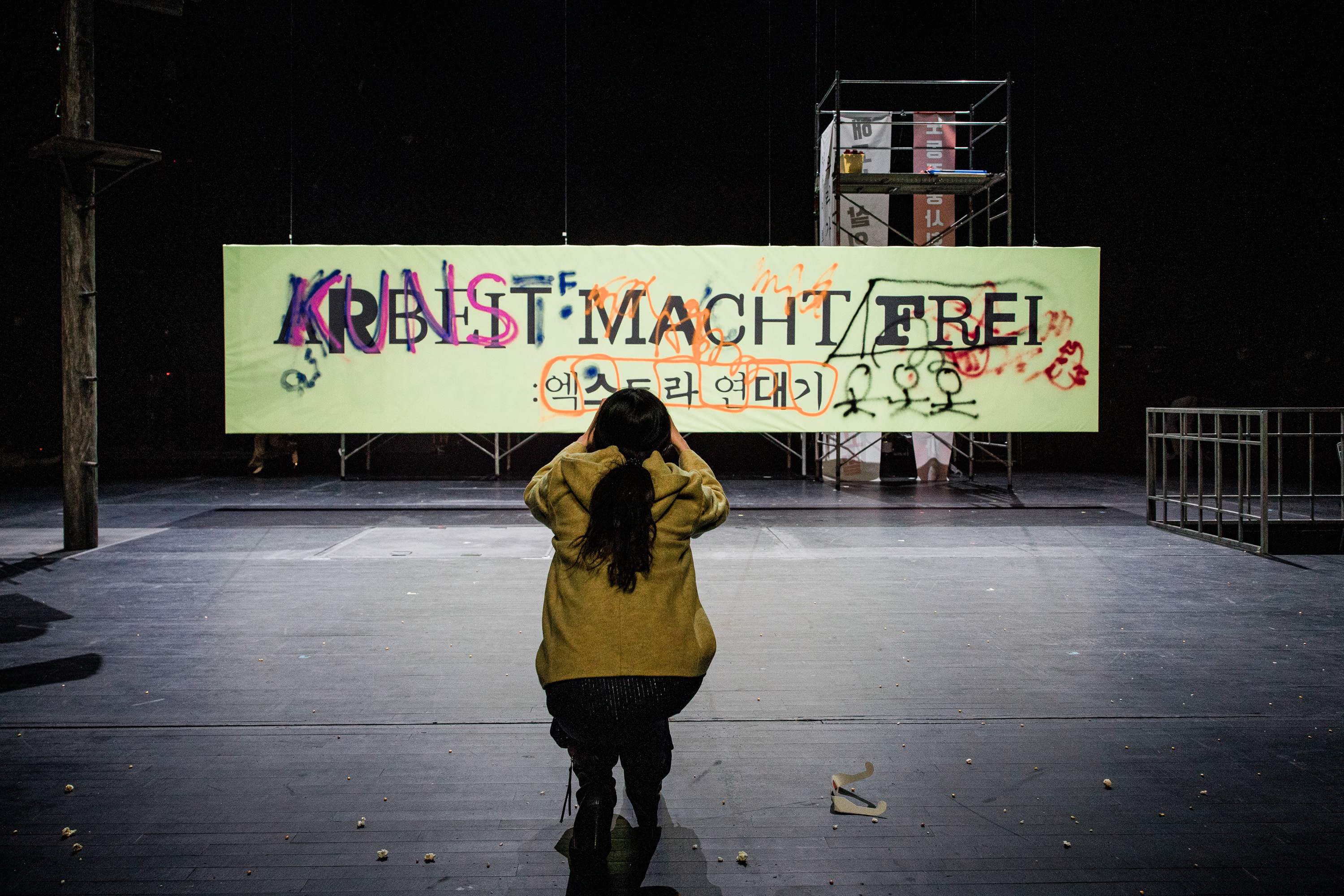 인물 대신 시공간이 등‧퇴장한다는 설정, 한 배우가 다역을 연기하는 등 전환의 경계선을 허무는 연출을 선보인다. 윤한솔 연출가는 이 작품에 대해 “연극 장르의 형식에 대한 도전”이라 소개했다.