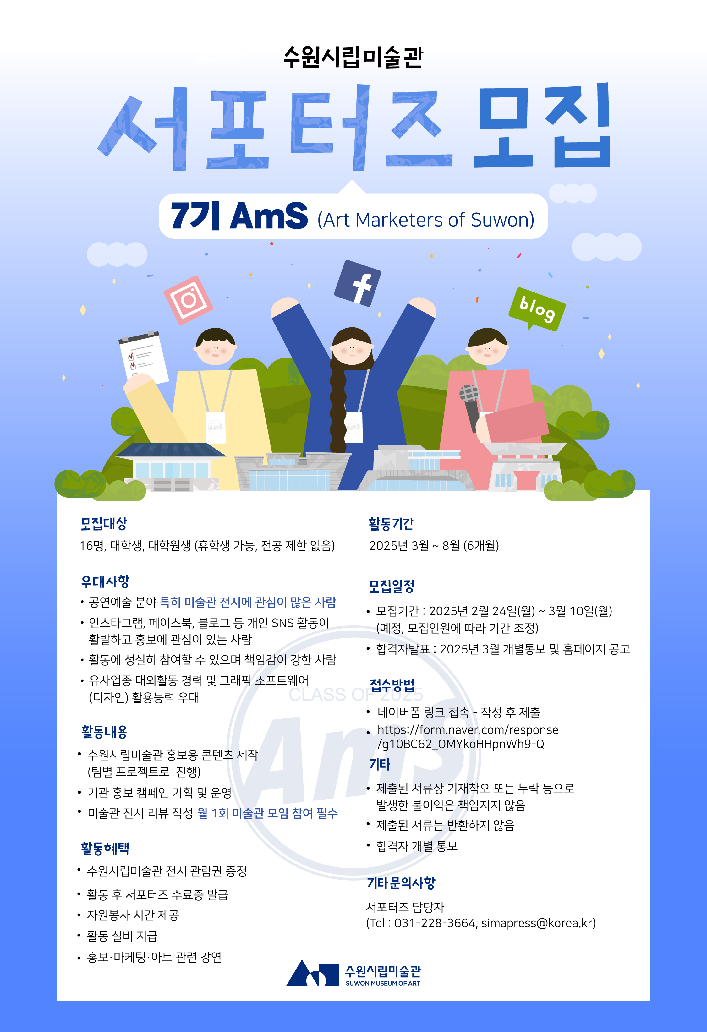 수원시립미술관 전시 마케팅 활동을 진행할 제7기 서포터즈 AmS 모집