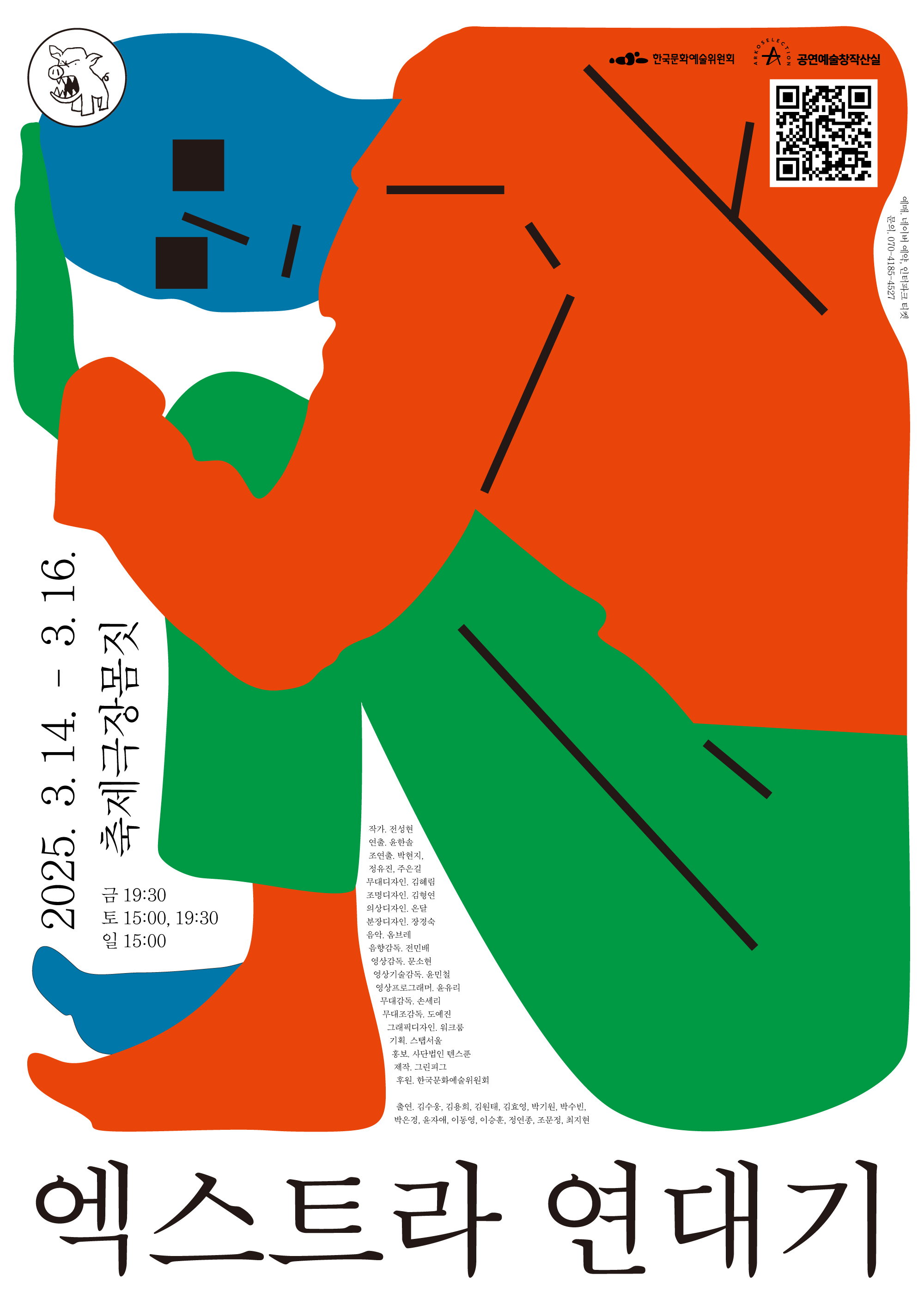 '엑스트라 연대기'는 3월 14일(금)부터 16일(일)까지 금요일 저녁 7시 30분, 토요일 오후 3시, 저녁 7시 30분, 일요일 오후 3시 총 4회 공연을 올린다. 문의 070-4185-4527