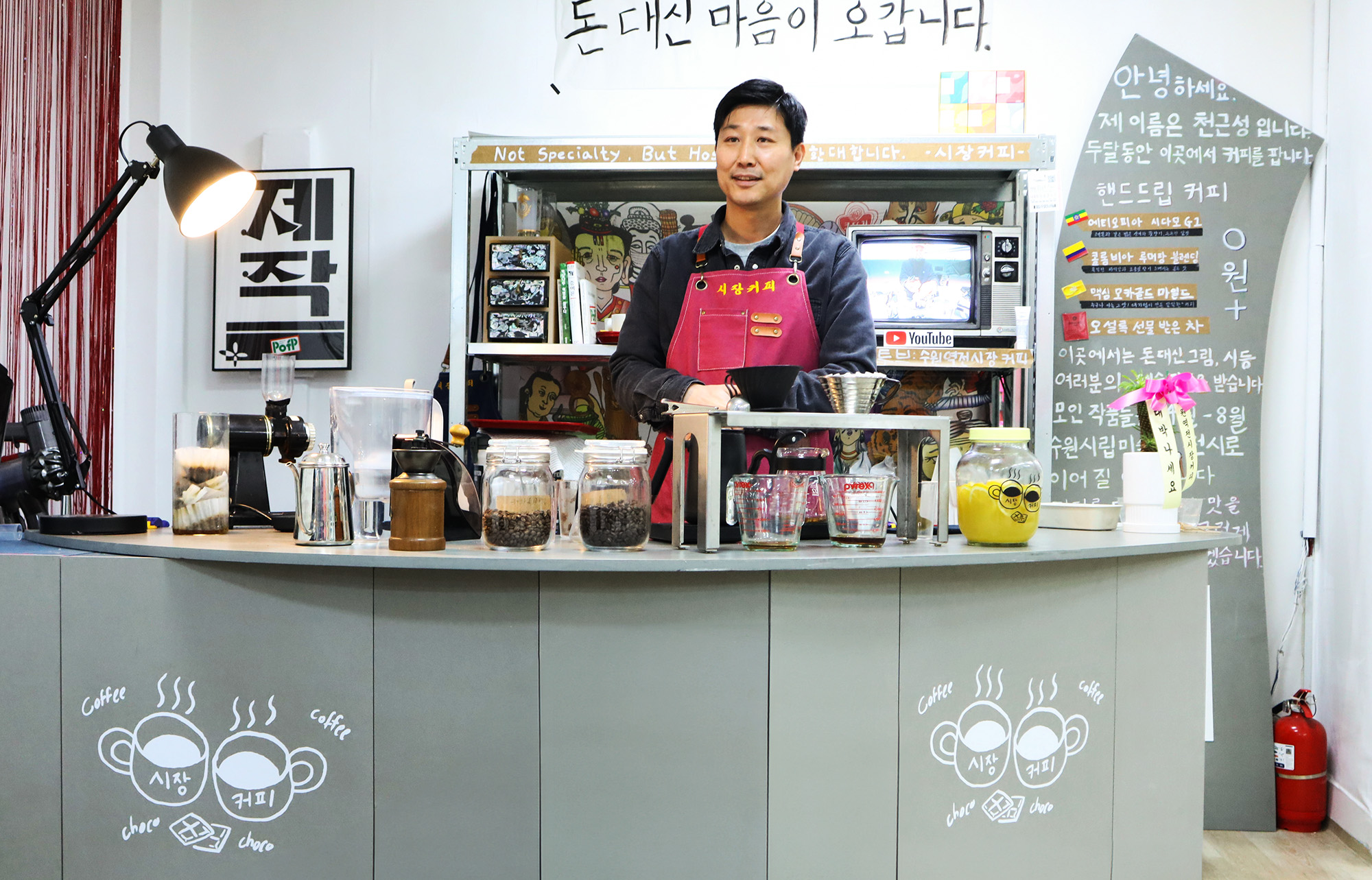 커피값 대신 그림 받아요! 수원시립미술관 10주년 특별전 관련 천근성 작가의 '시장 커피' 프로젝트 운영