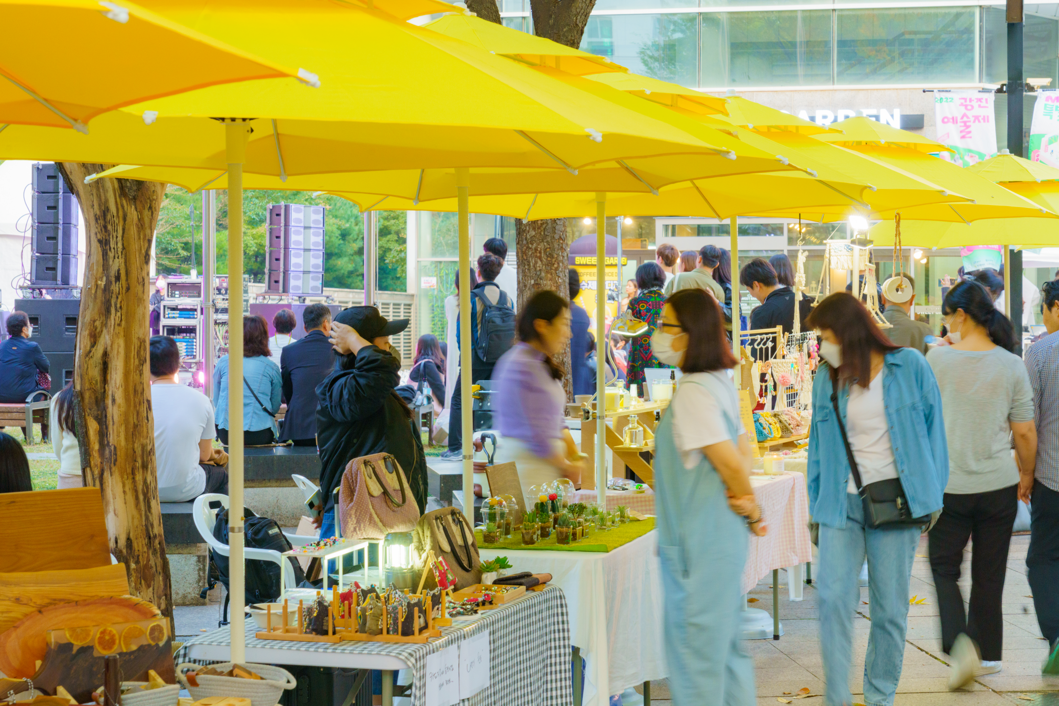 매주 토요일 청춘뜨락에서 열리는 '건대프리마켓'은 누구나 창작물을 만들어 판매하고 구입할 수 있는 예술장터로 일상생활 속 예술의 가치를 발견하고 영감과 재미를 느낄 수 있는 축제다.