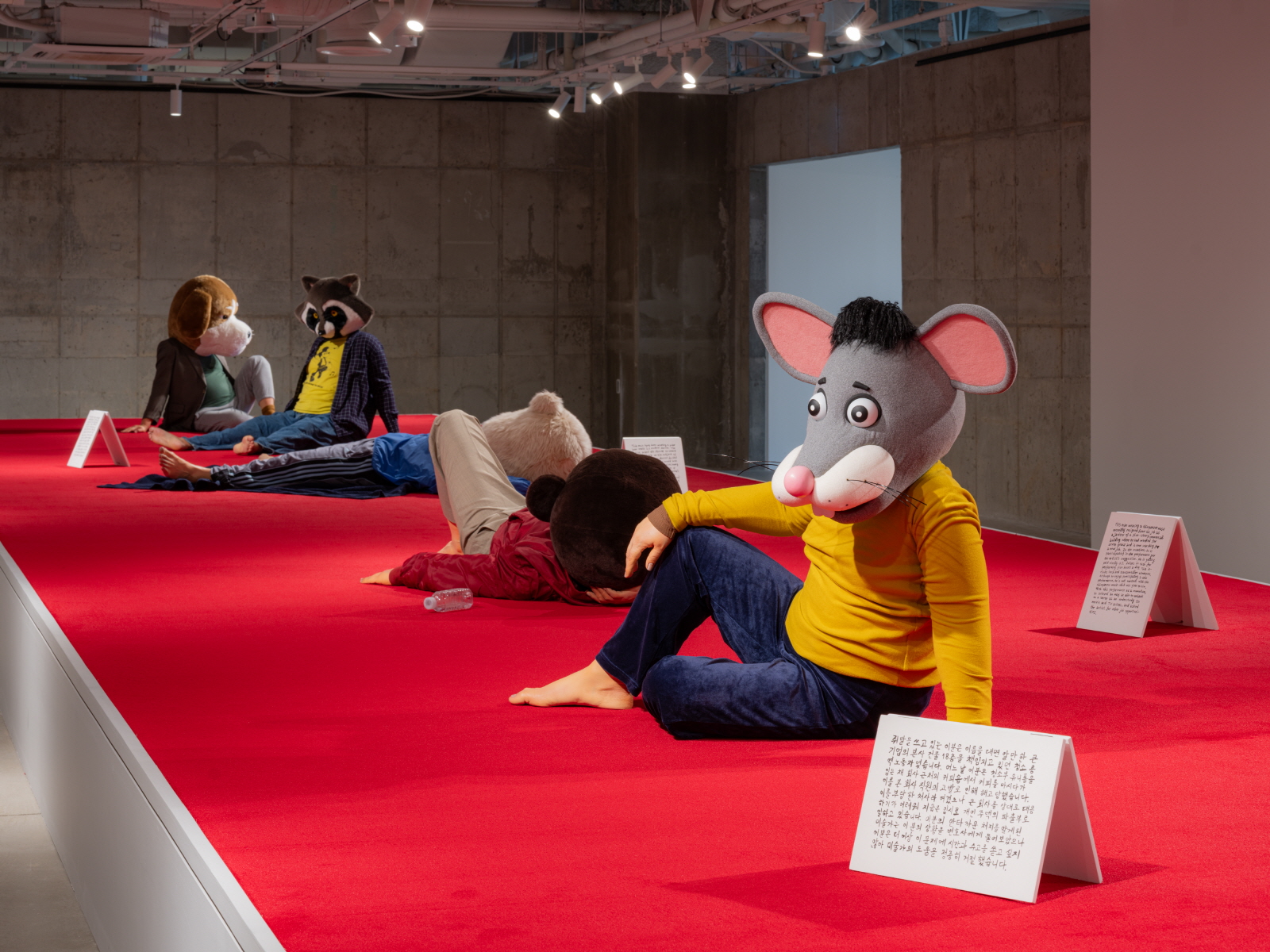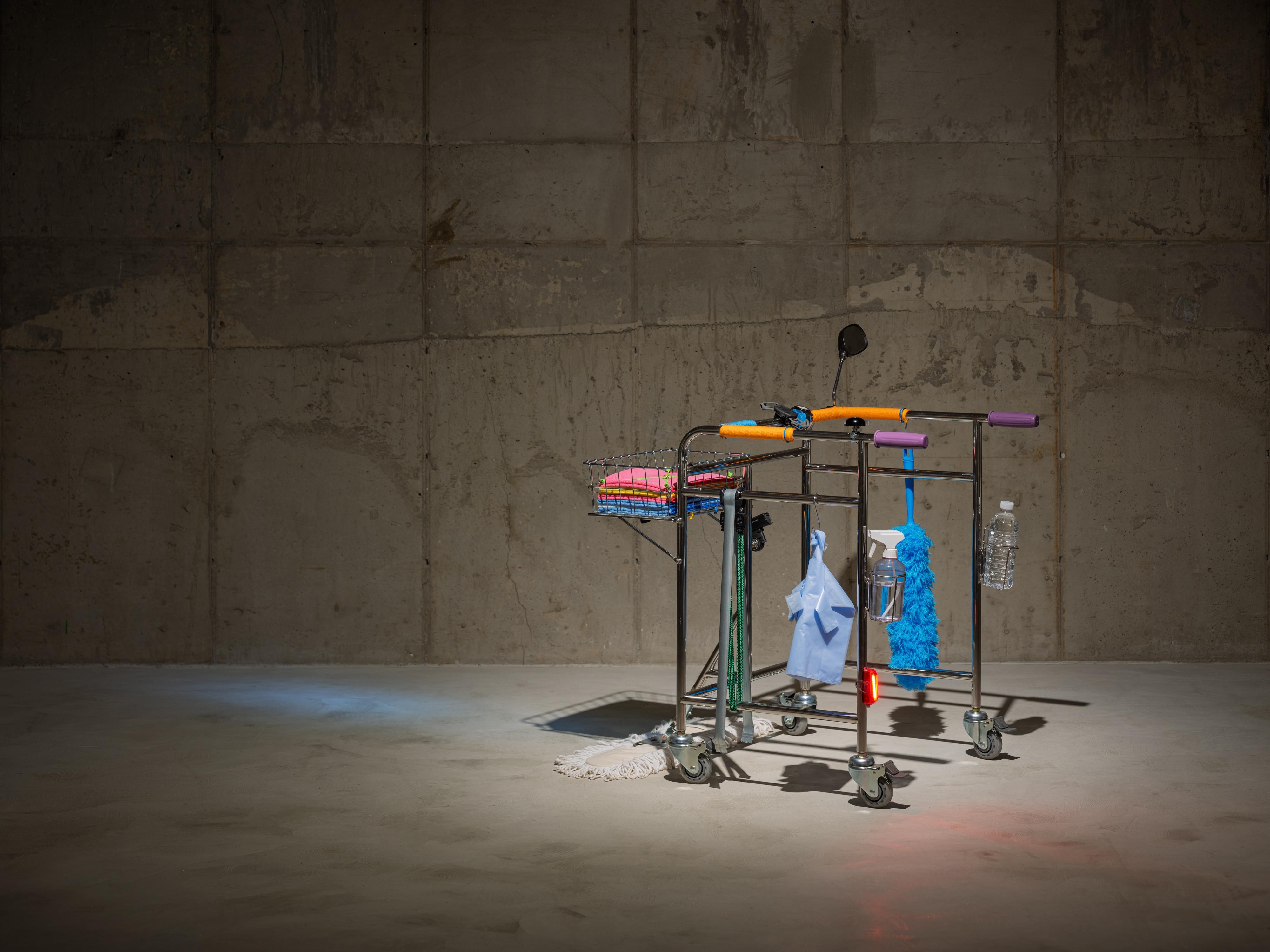 유모차를 개조해 폐지를 담는 할머니의 지혜에서 착안한 '전시 보행기'(2023)와 이번 전시를 위해 고안된 또 다른 전시 보행기인 '꼭꼭 숨어라 머리카락 보일라'(2025)는 관람객이 직접 운행할 수 있다. 이는 전시의 시공간과 관람객의 감각을 동기화하기 위한 장치이다.