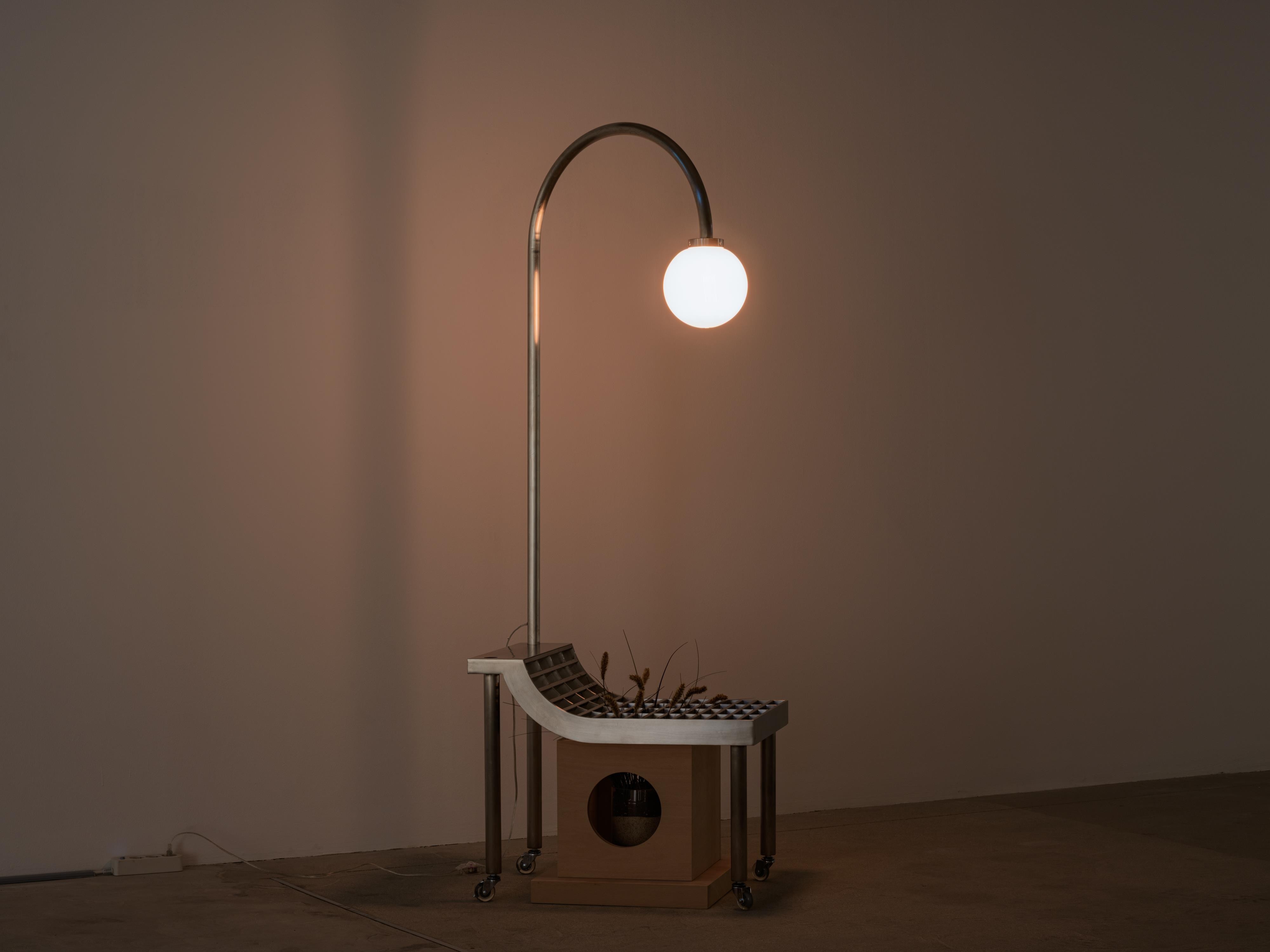하수구 배수 그레이트 사이로 빼꼼 나온 식물을 보고 파라솔 아래 누워있는 사람을 연상하며 만든 '여름 그늘'(2023) 속 식물, 조명, 배수 그레이트의 조합처럼, 카테고리를 벗어난 사물의 접목은 효율성을 향한 일방향의 개량이 아니라, 도시 문명에서 박길종이 세심하게 고안해 낸 신묘한 공생과도 같다.