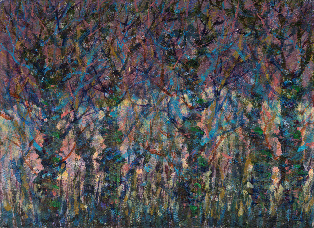화면 가득 격자무늬 공간에 상상하던 잔상을 비구상으로 제작하여 신비스러운 느낌을 주기도하고, 자연의 풍경을 세밀한 묘사 보다 전체적인 윤곽만으로 아련한 감성을 자극하여 몰입하게 만들었다.