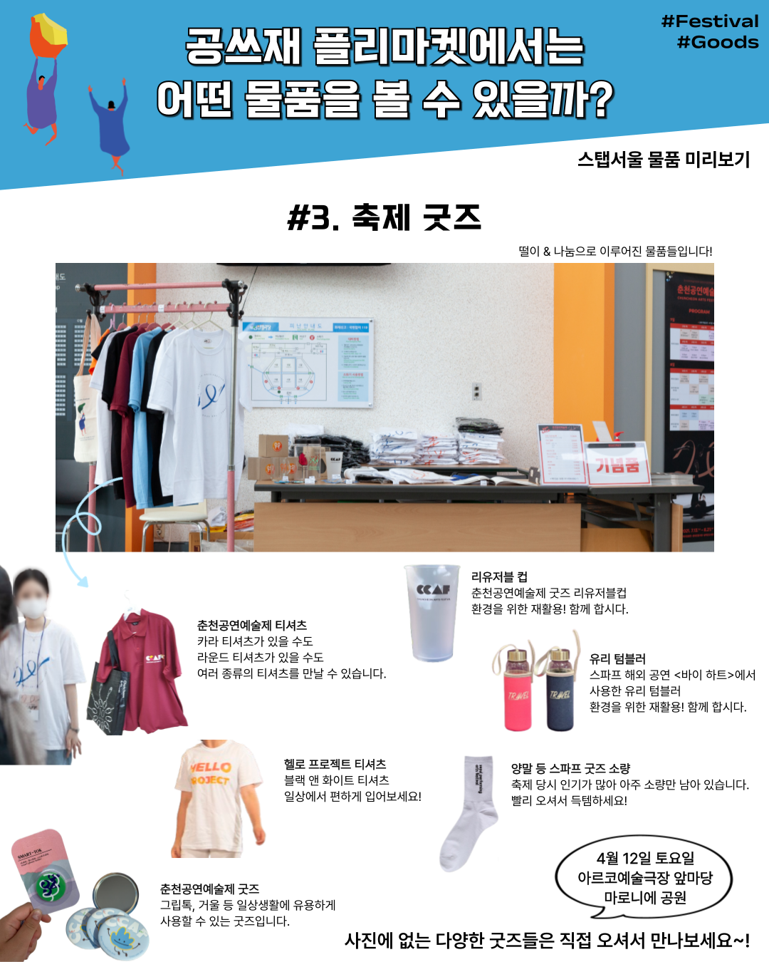 버리지 말고, 나누자 – 예술로 순환하는 공쓰재 플리마켓 4월 12일, 공연 소품, 의상 등 재활용 플리마켓 열린다. 물품 기부 경매, 취미 판매 등 공연하는 사람들의 환경 실천