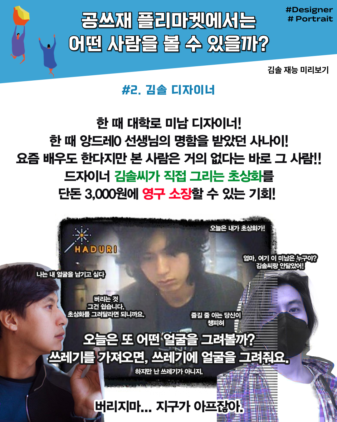 장터는 오는 4월 12일(토) 12시부터 아르코예술극장 앞마당(마로니에 공원)에서 이용할 수 있다. 당일 비 소식이 있지만, 주최 측에서 천막을 설치해 예정대로 진행된다. 문의 070-4185-4526