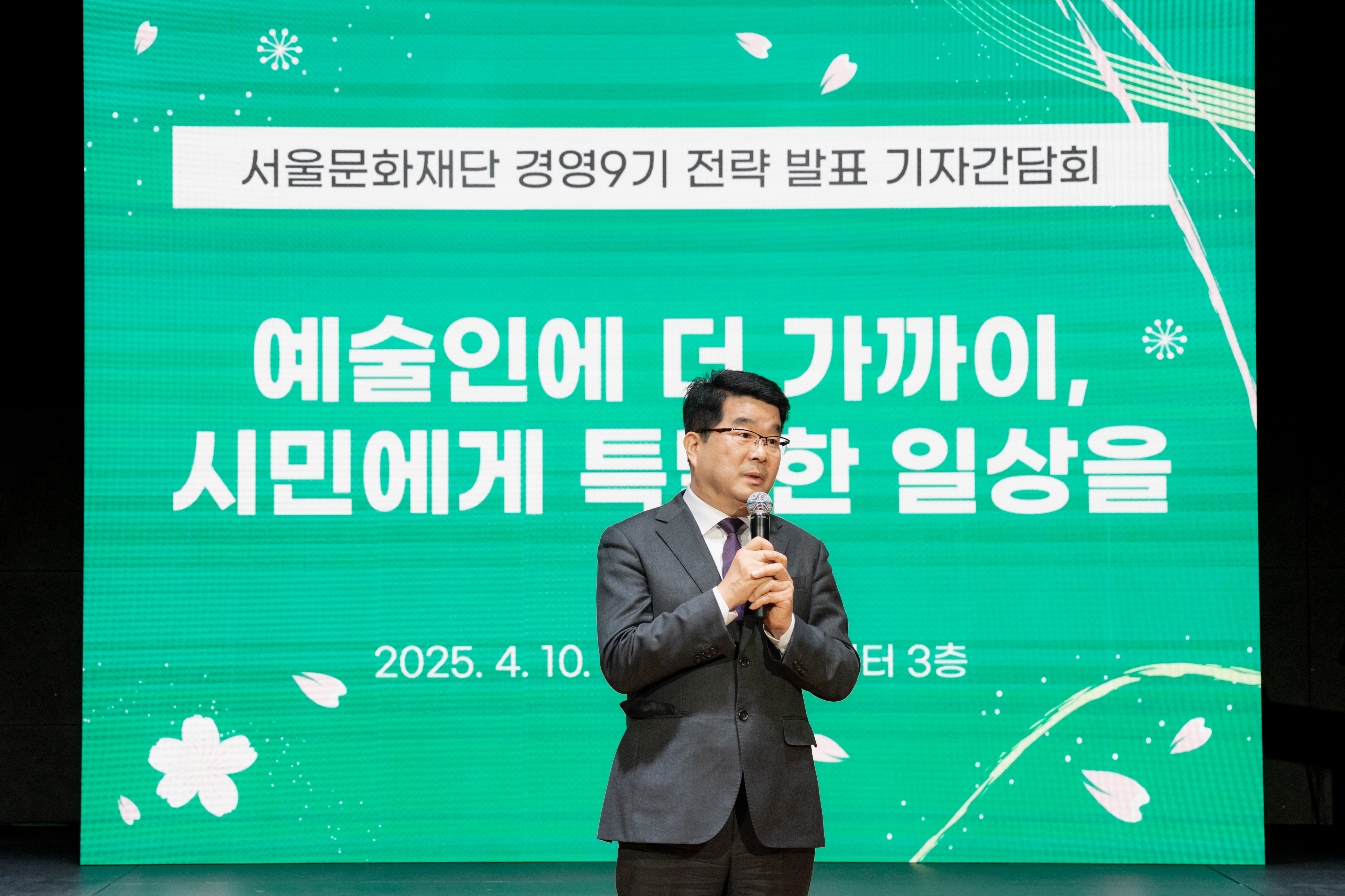 [플레이뉴스 문성식기자] 서울문화재단은 지난 1월 1일 임기를 시작한 송형종 대표이사의 취임 100일을 맞이해 예술 현장과의 소통을 강화하고 시민 일상에 특별함을 선사할 경영 9기 3개년(2025-2027)의 전략 방향과 주요 사업을 10일(목) 서울연극센터에서 발표했다.