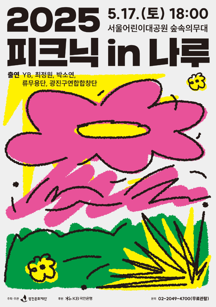 '2025 피크닉 in 나루'는 5월 17일(토) 오후 6시, 서울어린이대공원 숲속의무대에서 개최되며, 관람료는 무료다.