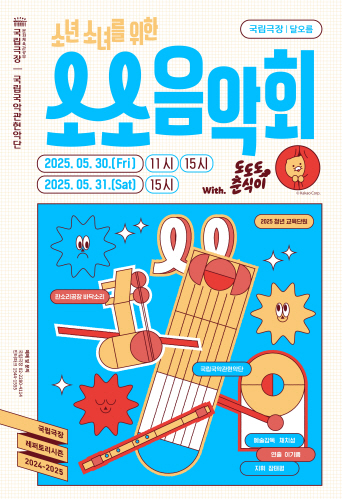 [플레이뉴스 문성식기자] 국립극장(극장장 박인건) 전속단체 국립국악관현악단(예술감독 겸 단장 채치성)은 소년소녀를 위한 '소소 음악회'를 5월 30일(금) 오전 11시와 오후 3시, 31일(토) 오후 3시에 국립극장 달오름극장에서 공연한다.