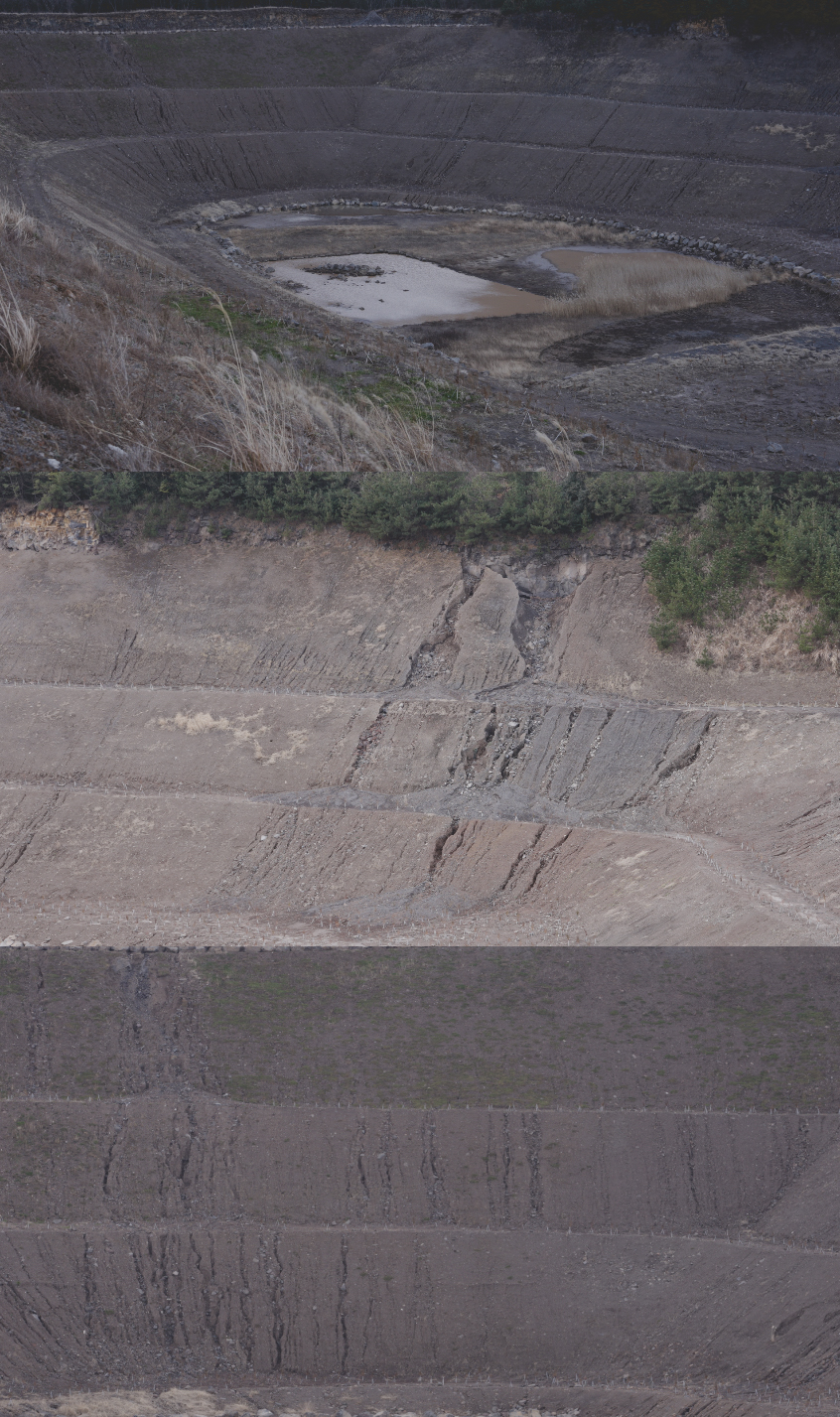 | 서울을 기반으로 활동하는 곽소진은 영상, 퍼포먼스, 설치 등 다양한 매체를 넘나들며 활동한다. 작가는 산책을 통해 도시의 복잡한 구조를 인식하고 삶의 태도와 방식을 고민한다. 출품작 <무빙 그라운드>는 작가가 화산, 채석장, 석재상을 직접 찾아가 촬영한 풍경을 수직의 탑 형태로 구성한 3채널 영상 작업이다. 고정되고 단단하다고 여겨져 온 지표면은 영상 속에서 확대와 축소를 거듭하며 액체처럼 유동적인 성질을 띠게 되고, 이를 통해 작가는 우리가 당연하게 인식해 온 ‘땅’의 이미지를 새롭게 바라볼 것을 제안한다. |