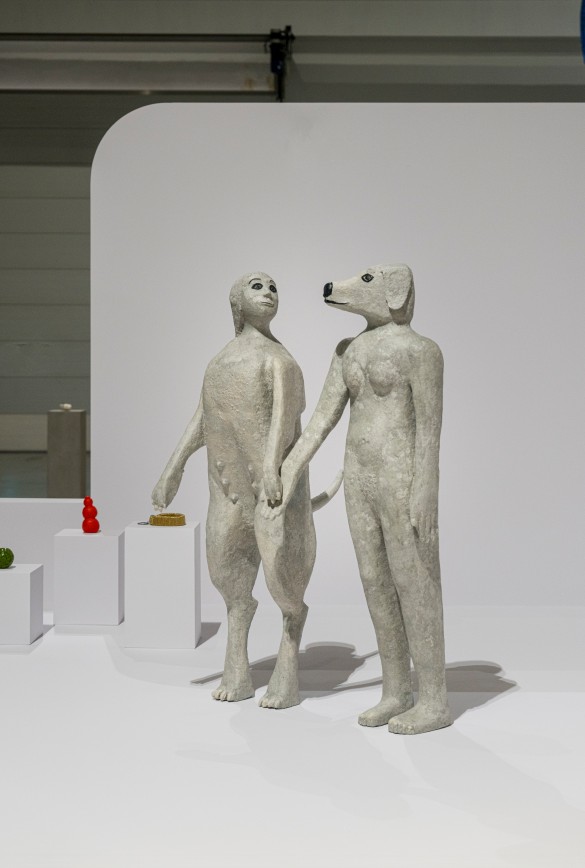 | 에밀리 루이스 고시오, '진정한 사랑은 결국 당신을 찾을 것이다', 2021, 혼응지, 스티로폼, 나무, 알루미늄 관, 합성수지, 아크릴릭 광택제, 158.8×116.8×96.5cm, 작가소장 | 라파엘 드 그루트, '손과 손 사이-엉키는 매듭들', 2025, 퍼포먼스, 설치, 단채널 비디오, 사운드, 가변크기, 부산현대미술관 제작 지원 |