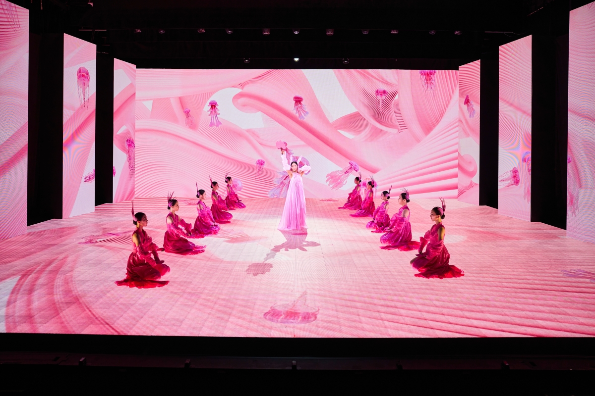 3막 공간은 기와지붕, 책가도, 단청 문양 등 궁중 건축 요소를 모티브로 한 한국적인 전통미를 현대적 그래픽 언어로 재해석한 무대다.