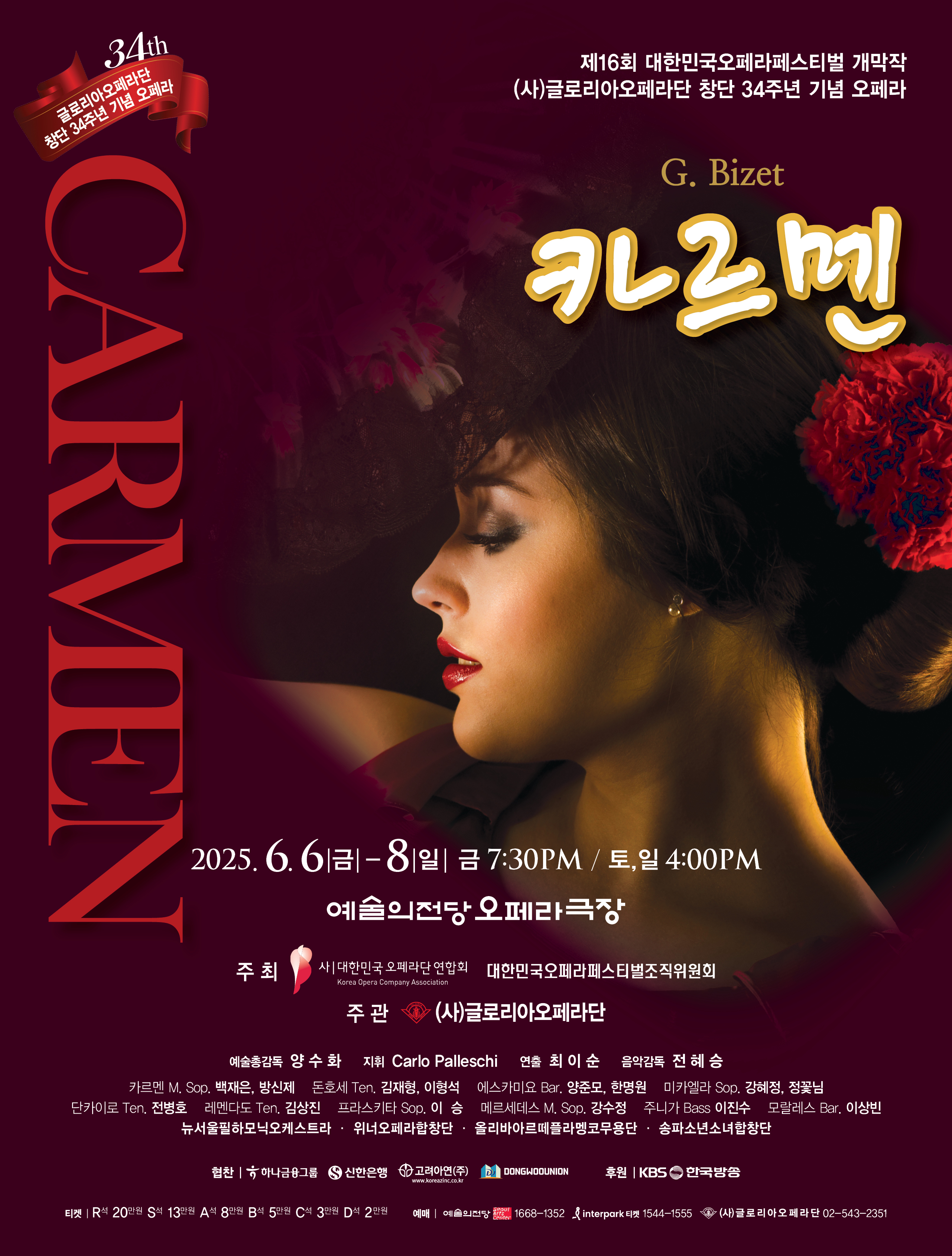 페스티벌의 화려한 서막을 여는 공연으로 글로리아오페라단의 '카르멘'이 6월 6일부터 6월 8일까지 예술의전당 오페라극장에서 관객들을 찾아온다.