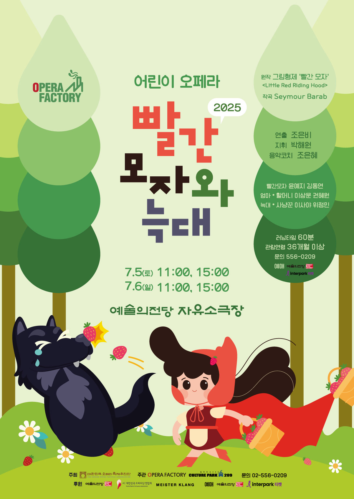 | 출 연 | 빨간모자(Sop.) ∣윤예지, 김동연 엄마, 할머니 (Ten.)(Sop.) ∣ 이상문, 권해원 늑대, 사냥꾼 (Ten.)∣이사야, 위정민 |