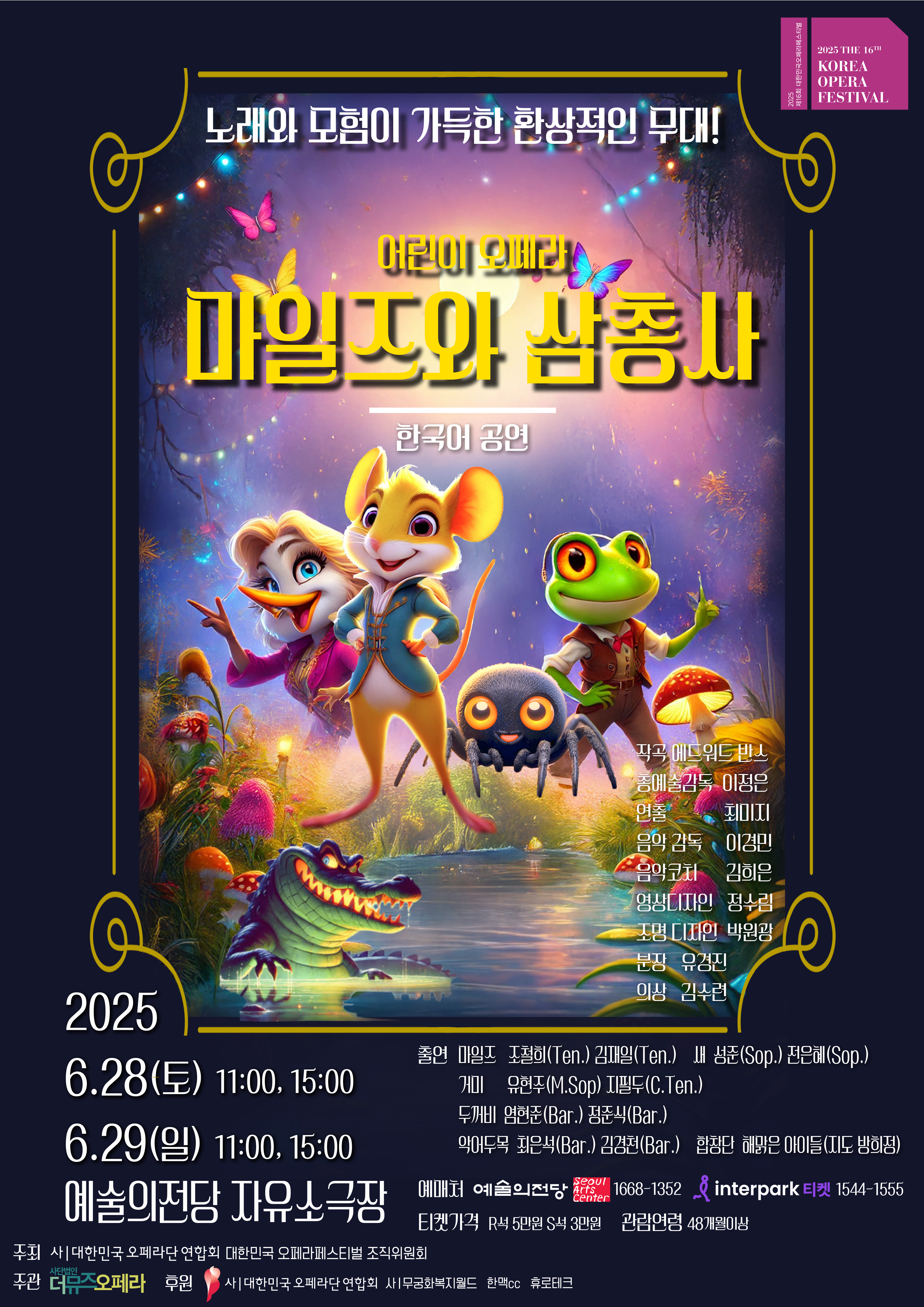 | 출 연 | 마일즈(Ten.) ∣김재일, 조철희 거미(M.Sop.), (C.Ten) ∣ 유현주, 지필두 새(Sop.) ∣성 준, 전은혜 두꺼비(Bar.) ∣염현준, 정준식 악어두목(Bar.) ∣허 철, 최은석 |
