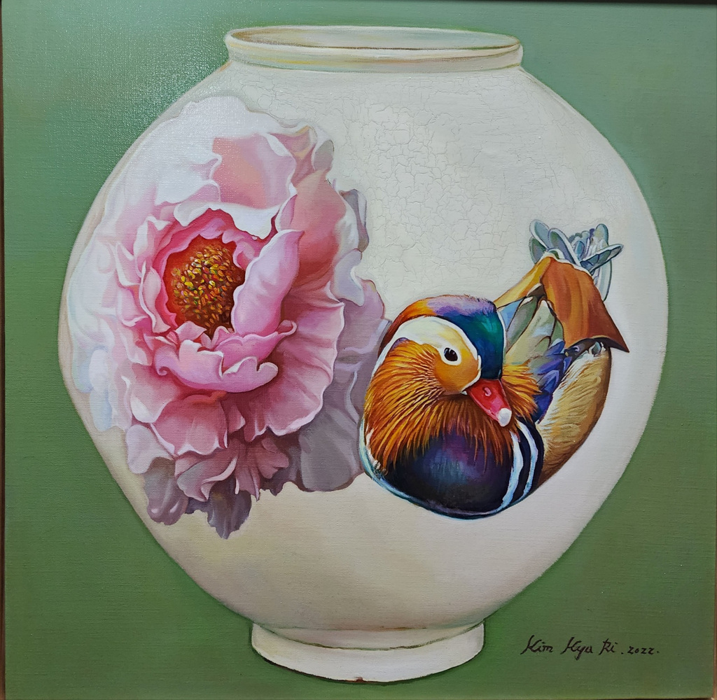 순응하고 받아들이는 자세에서 한계를 뛰어넘을 수 있는 에너지가 생기는 희망의 메시지를 활짝 핀 주변의 목단과 강열한 붉은 빛으로 전달하고자 했다.