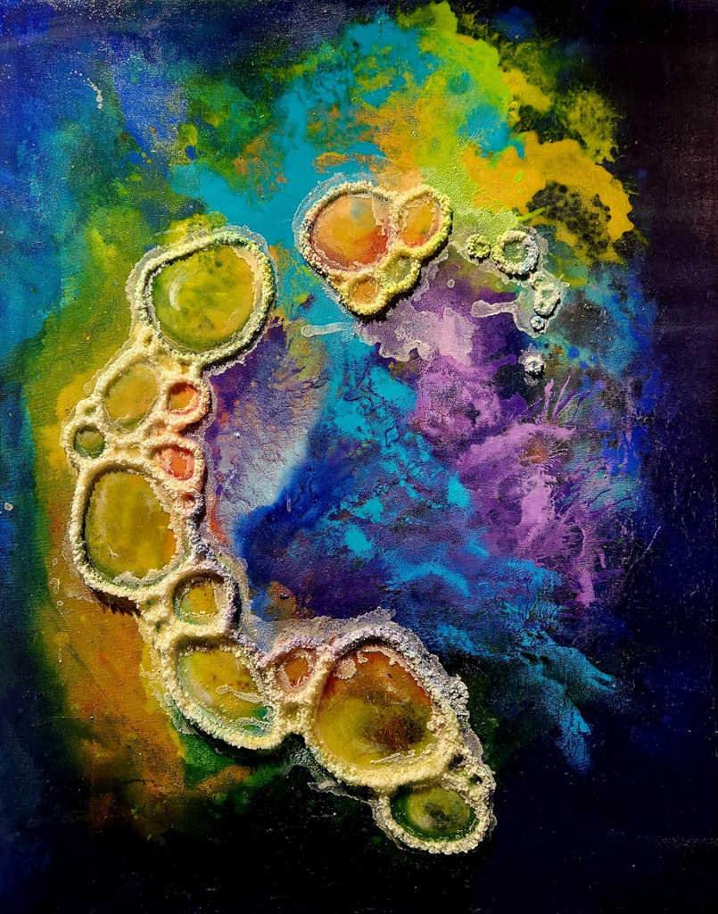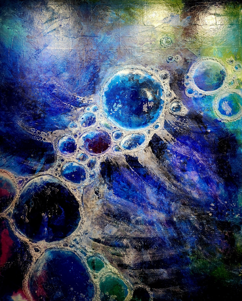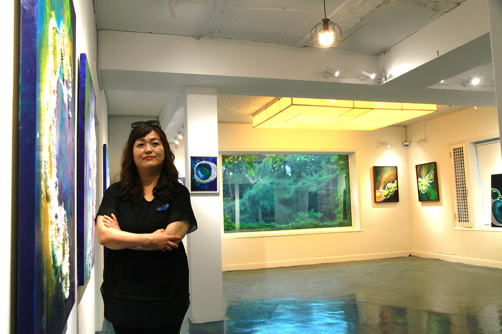 산들소리 나눔 갤러리 블루 개관 초대전을 실시하는 주명선 작가는 "아름다운 물거품 형상에서 빛 안의 생명을 떠올리며 암염과 접목하여 작품으로 승화시켰다.