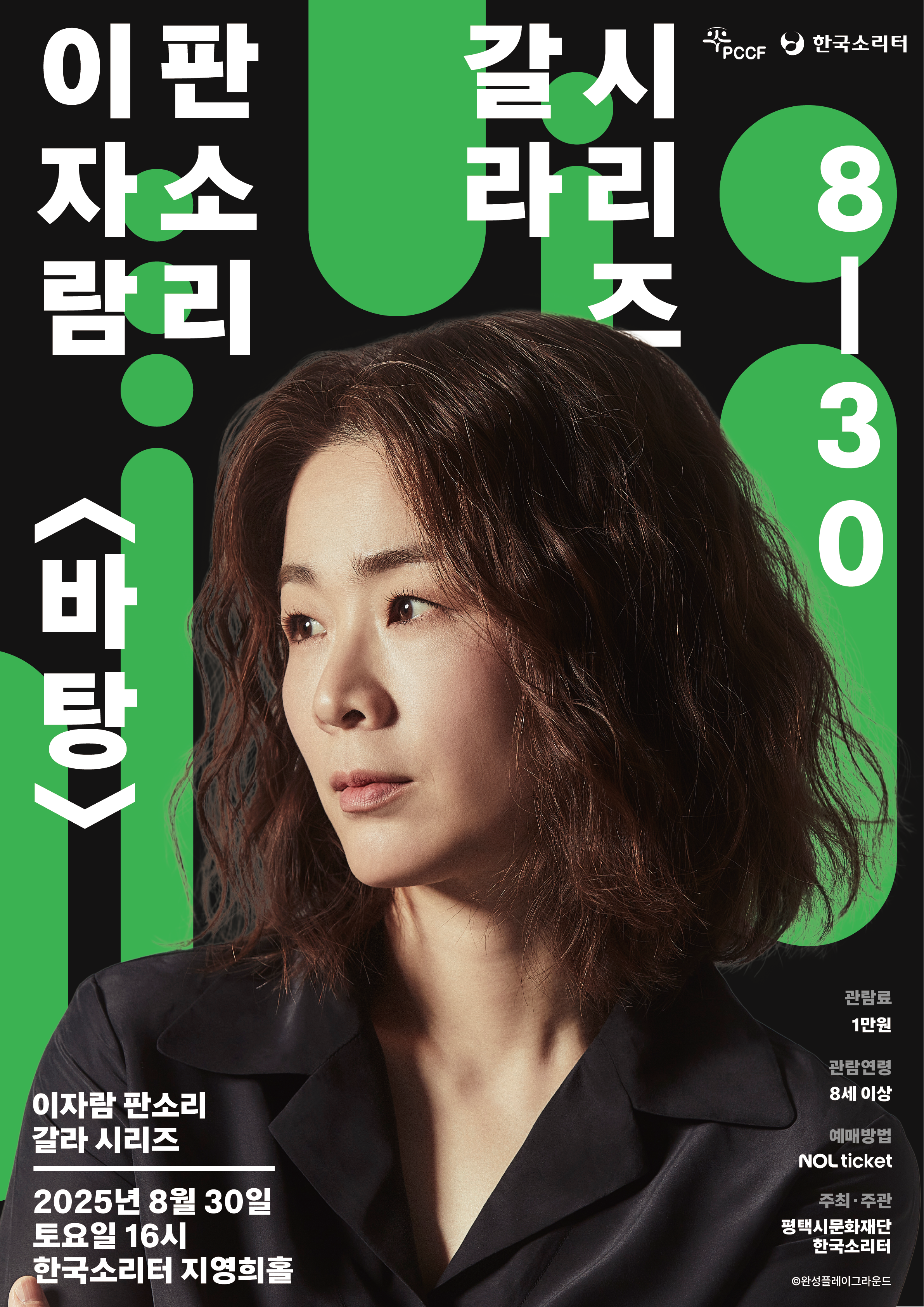 [플레이뉴스 문성식기자] (재)평택시문화재단(대표이사 이상균)은 오는 8월 30일(토) 오후 4시 한국소리터에서 이자람 판소리 갈라 시리즈 '바탕'을 선보인다.