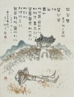 '삼랑성 – 이은상 시' 글 평보 서희환, 그림 운보 김기창, 1970, 48.4×36.6cm, 종이에 먹, 수묵담채, 개인소장 |