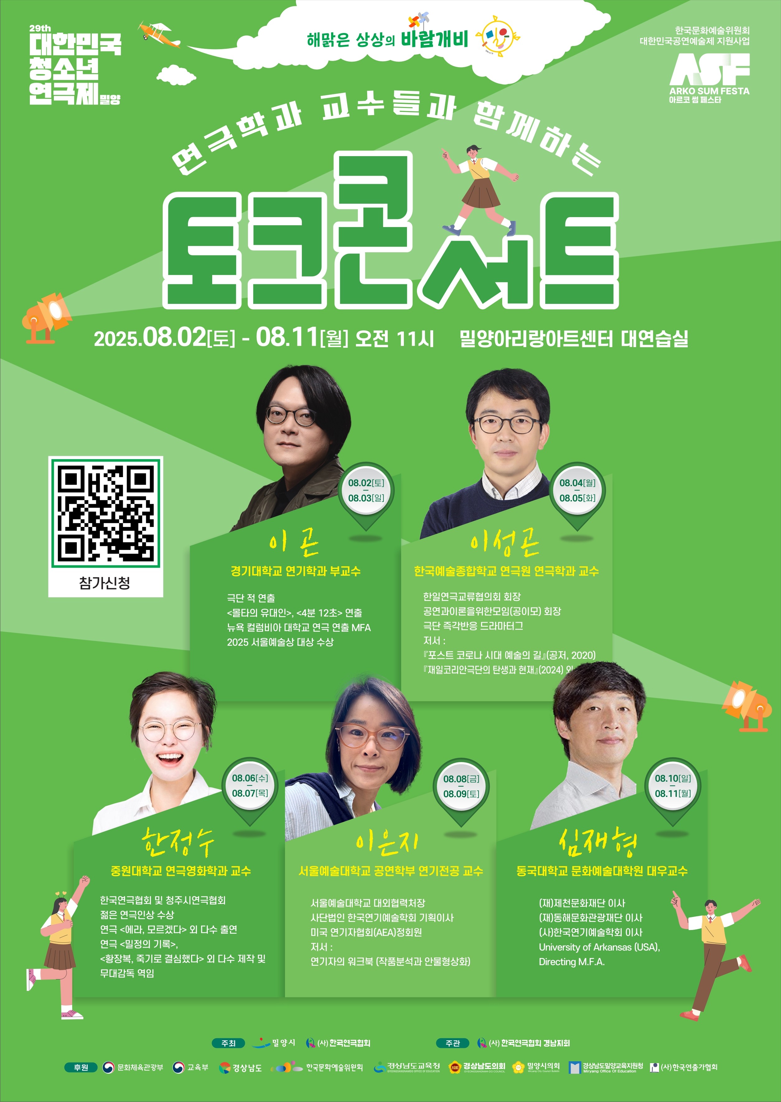 연극학과 교수들과 함께하는 토크콘서트는 경연 참가 청소년뿐만 아니라 청소년이라면 누구나 참여 가능하며, 참여 교수는