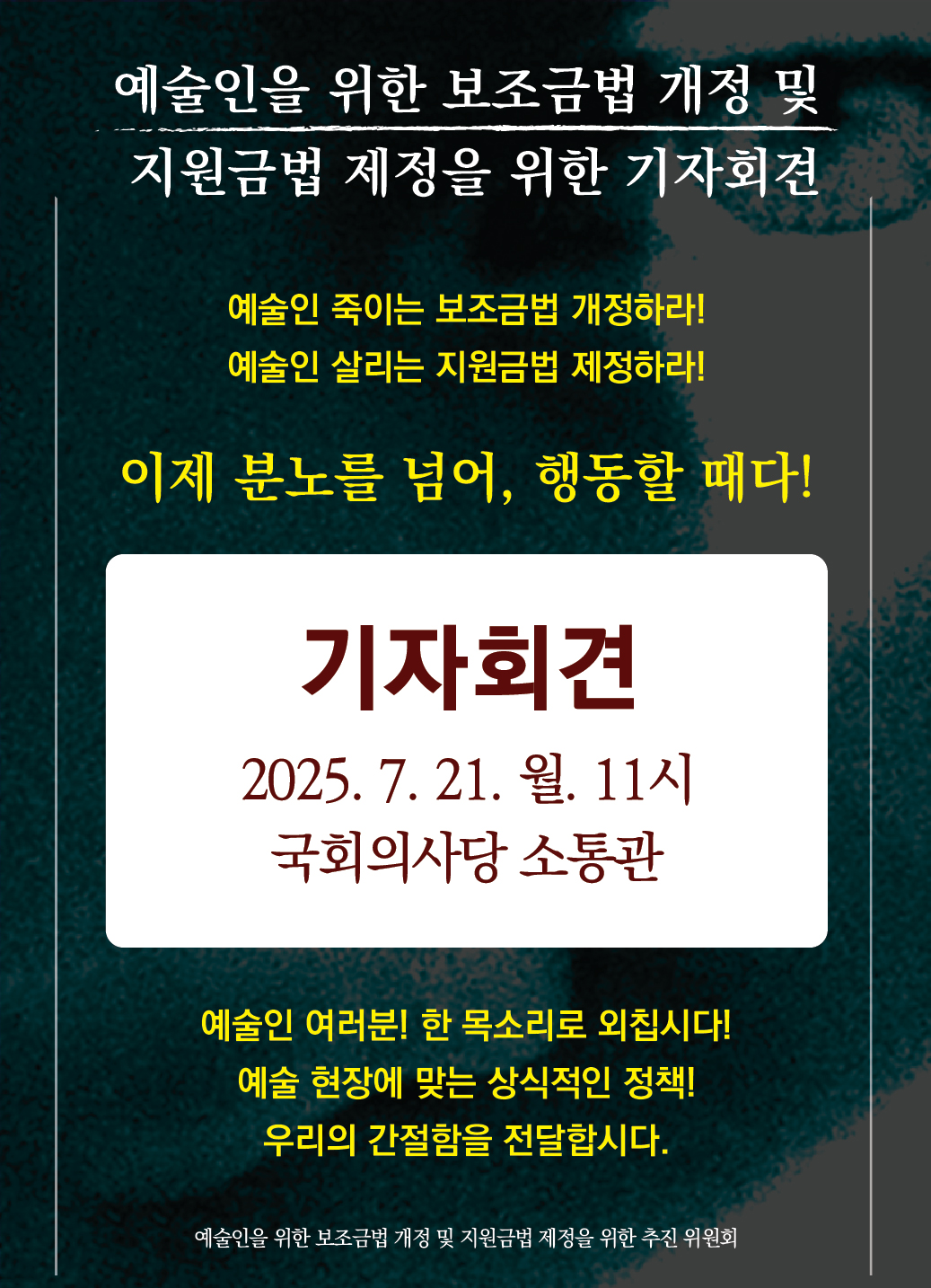 연극계를 중심으로 한 예술인들은 지난 5년에 걸쳐 진행된 극작가협회의 재판 결과로 인해 다가온 파국을 마주하며, 더 이상 보조금 관리법의 칼날에 쓰러지는 예술인들이 없게 하기 위해 이렇게 나섰다.
