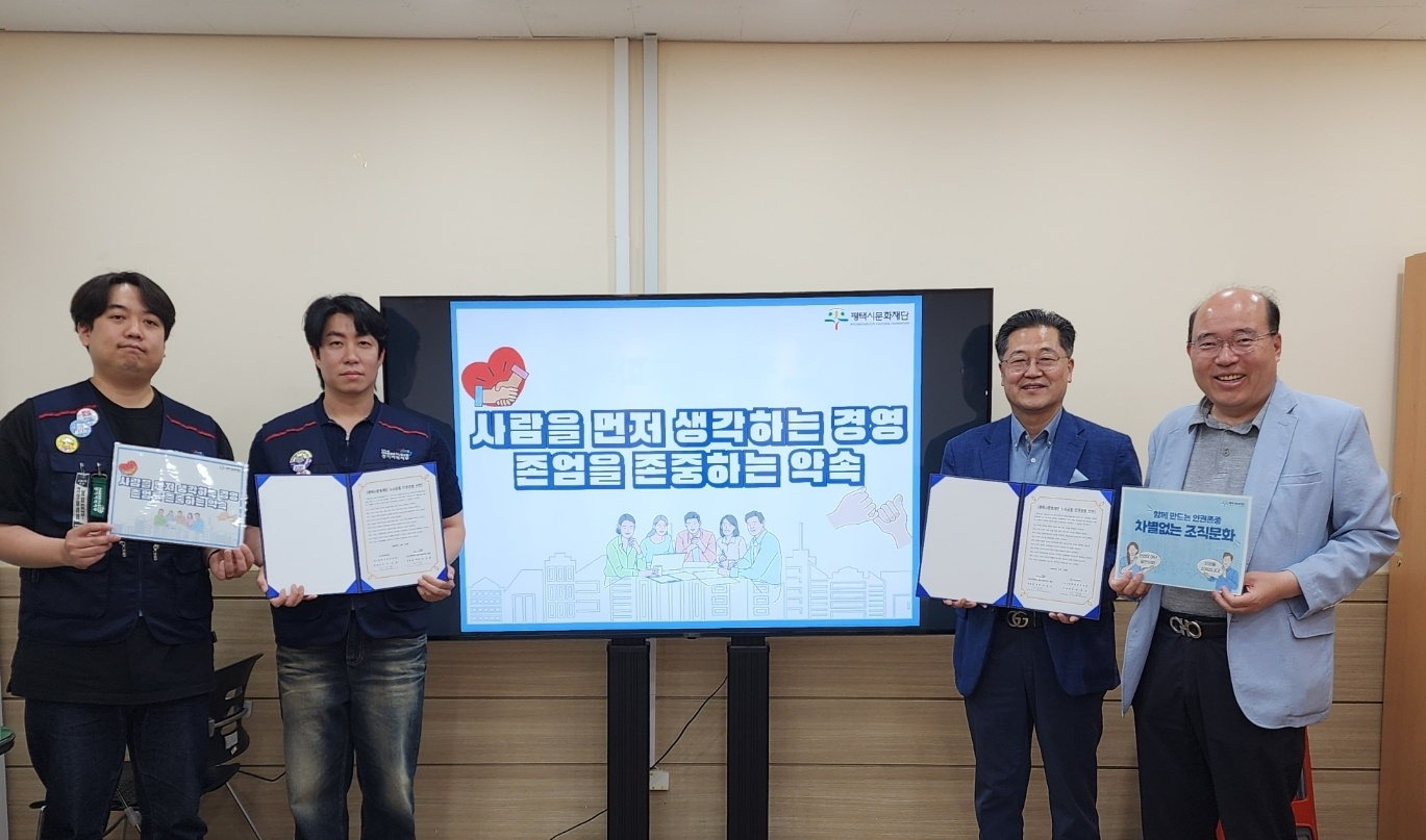 [플레이뉴스 문성식기자] 재단법인 평택시문화재단은 2025. 7. 7.(월) 남부문예회관에서 ‘임직원 인권경영 선포식 및 인권경영 결의대회’를 개최하고, 노사 공동으로 인권경영 실천의지를 다지는 인권경영 선언문 서약식을 진행했다.
