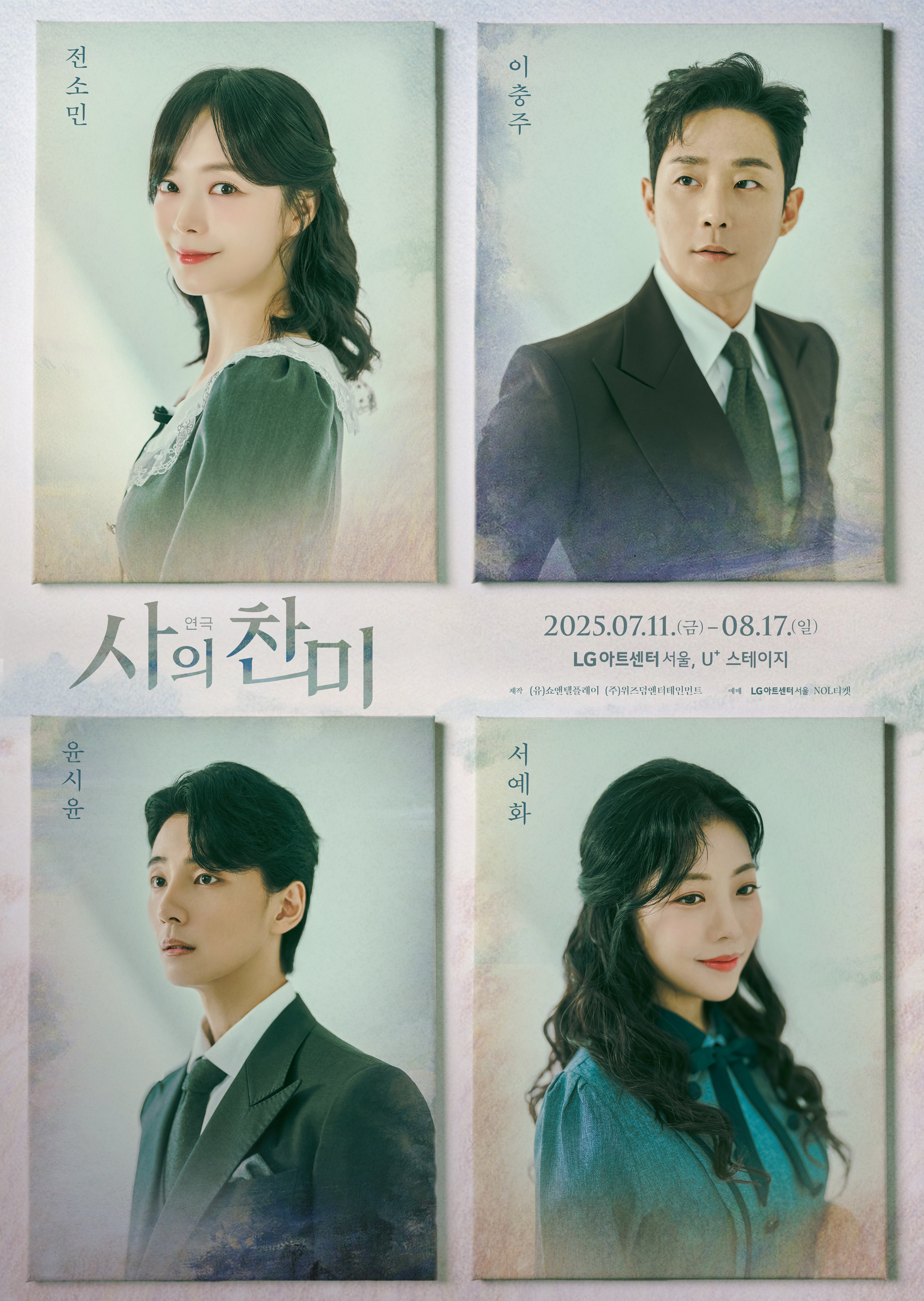 연극 '사의 찬미'는 8월 17일 (일)까지 LG아트센터 서울, U+스테이지에서 공연되며, 예매는 LG아트센터 서울 홈페이지와 NOL티켓을 통해 가능하다.