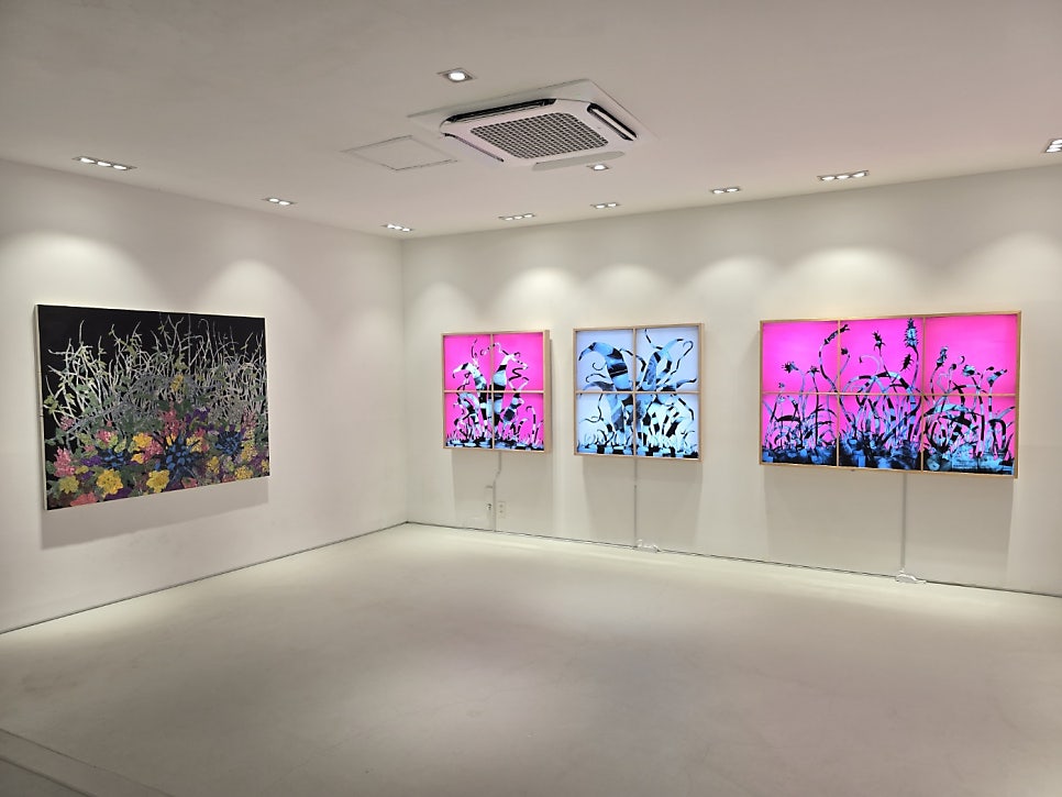 죽음과 생, 상처와 꽃, 음영과 빛의 경계에서 조용히 피어난 정원이 있다. 한기창의 작품은 단순한 시각적 이미지가 아니라, 생의 균열을 통과한 이들이 비로소 감각할 수 있는 ‘환영(幻影)의 치유 공간’이다.
