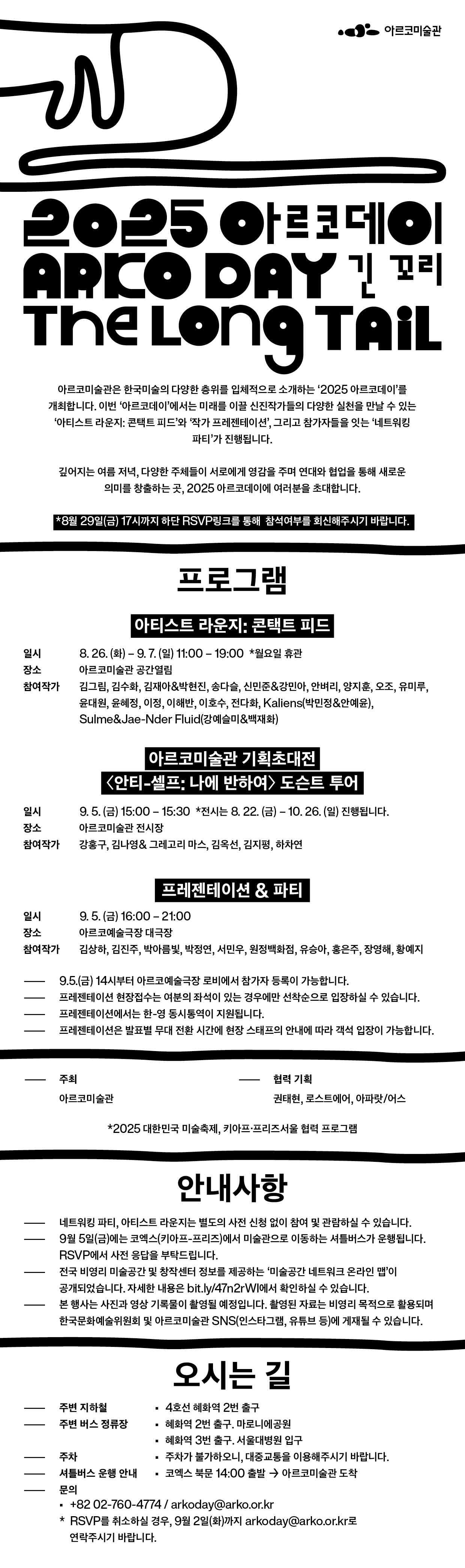 자세한 정보는 아르코미술관 홈페이지(www.arko.or.kr/artcenter)와 아르코데이 인스타그램(@arkoday_arko)을 통해 확인할 수 있다.