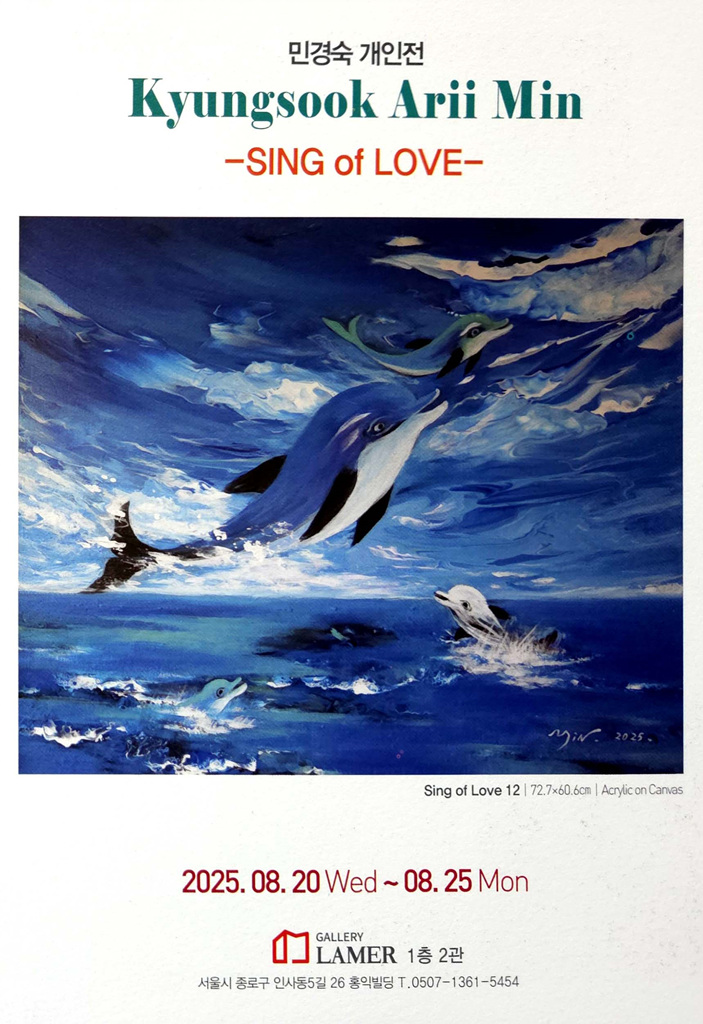 [플레이뉴스 문성식기자] 푸른 물결의 바다 세상을 경쾌하고 사실감 넘치게 이미지를 구축하여 생동감이 넘치며, 가족 사랑이 애틋하기로 알려진 바다 속 고래를 통해 행복을 전하는 작품으로 민경숙 작가는 2025년 8월 20일(수) ~ 8월 25일(월)까지 "Sing of Love" 타이틀로 서울 갤러리라메르 2관에서 개인전을 진행 중에 있다.