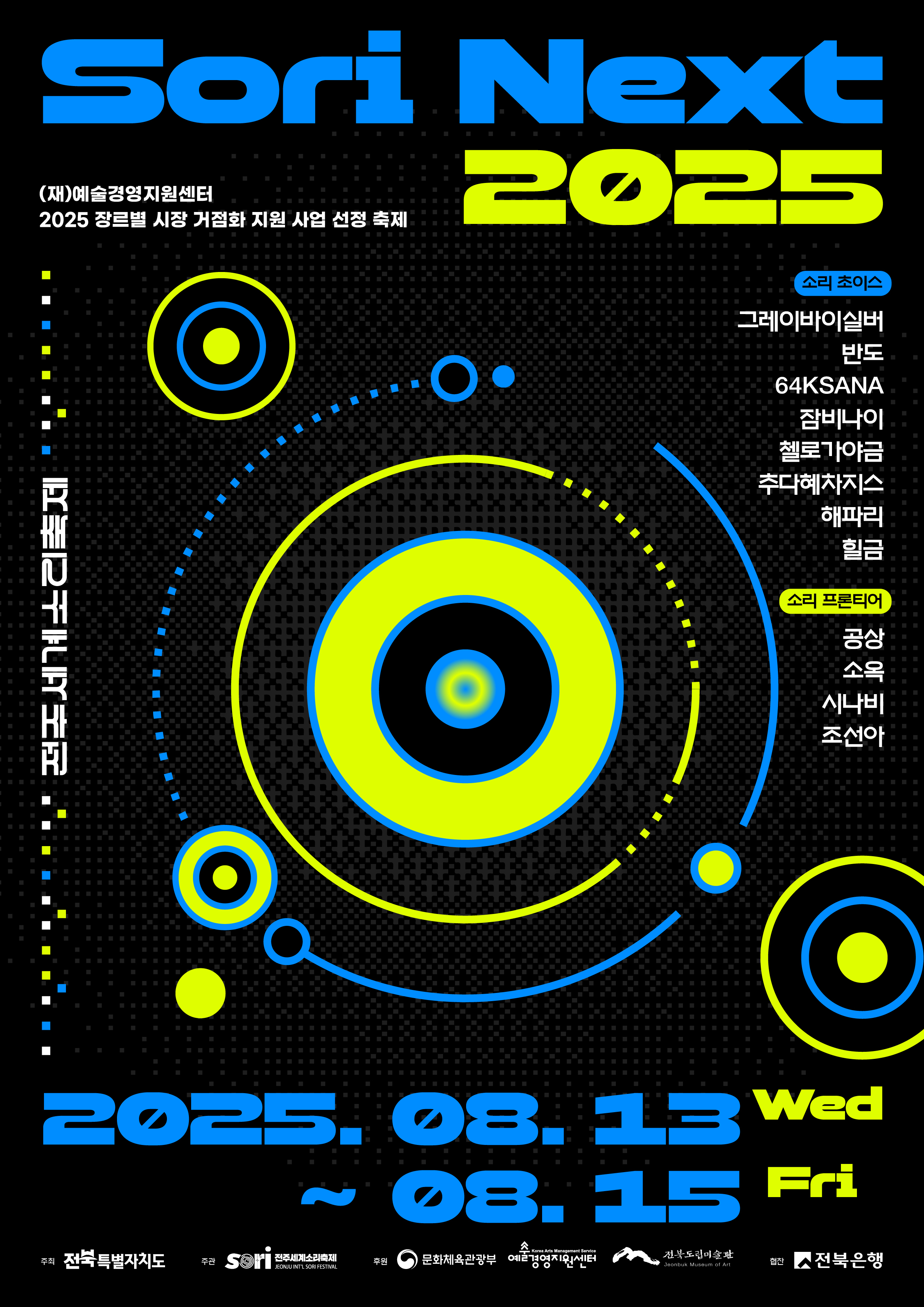[플레이뉴스 문성식기자] 소리축제는 올해 문화체육관광부와 (재)예술경영지원센터가 후원하는 ‘2025 장르별 시장 거점화 지원사업’ 선정 축제로 축제의 외연을 마켓으로 확장했다.