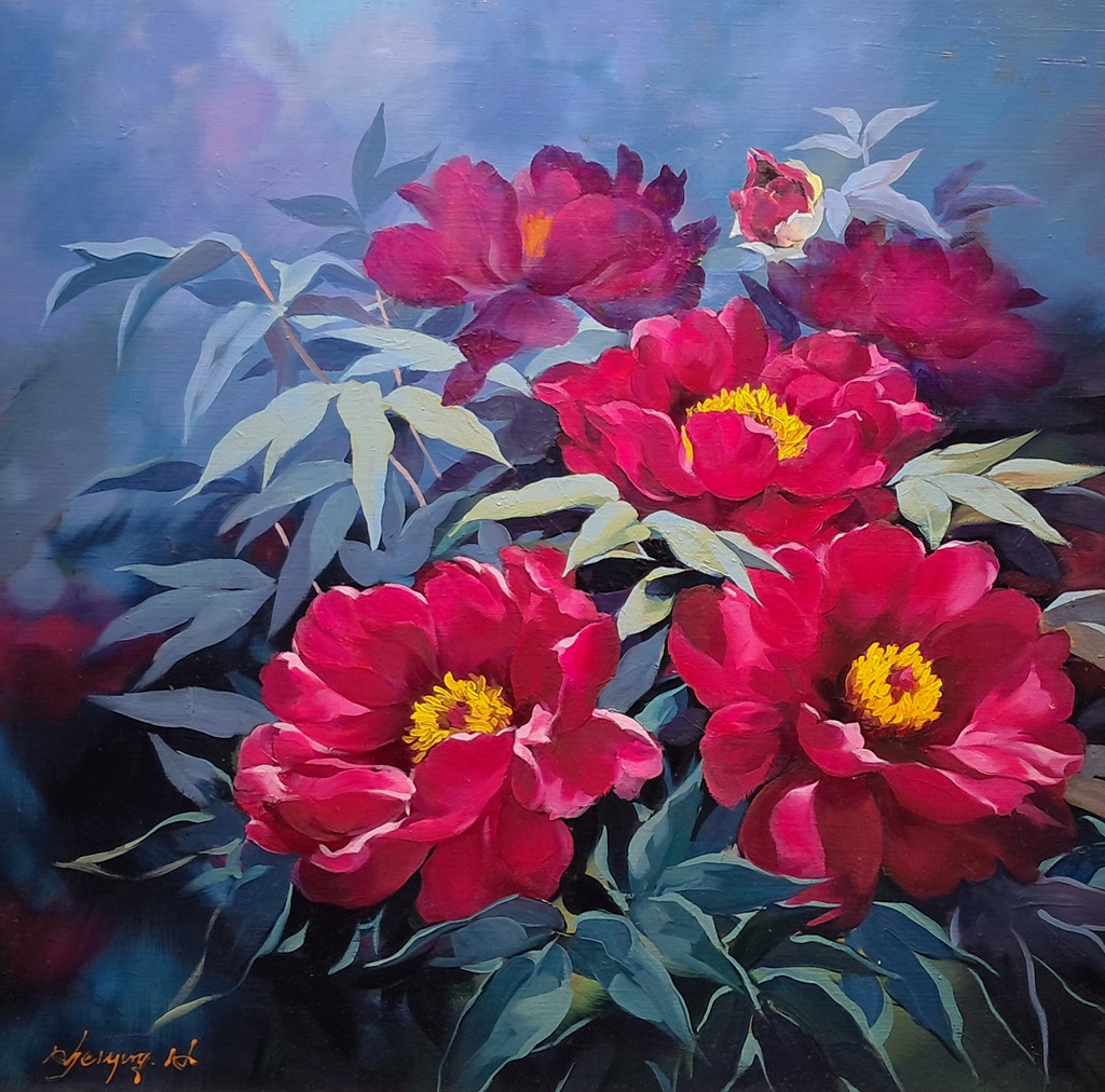 모란은 옛 부터 부귀영화, 번영, 행복, 평화 등의 좋은 의미가 담겨있어 우리 전통 미술 민화 또는 문인화에 많이 등장하는 소재의 꽃으로 작가는 섬세하고 깊은 터치감이 느껴지는 유화 작품을 가지고 기쁨의 뜻을 더욱 부각시켜 인상적이다.