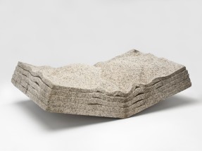적, 1979, 포천석, 20×70×45cm, 서울시립미술관 소장 전국광은 <적> 시리즈 통해 자연의 형태를 만드는 물리적인 힘과 비가시적인 에너지를 담아내고자 했다. 그 결과 마치 얇은 면이 층층이 쌓인 뒤 어떠한 힘이 가해져 굴곡이나 주름, 접힘 등 변형이 일어난 듯한 형태가 완성되었다. 쌓이고 굴곡진 형태는 자연의 지층에서 보이는 퇴적작용과 습곡작용을 연상시키기도 한다. 본 작품은 층층이 쌓인 면들이 가운데서 접힌 형태로 바닥과 접하는 중심선이 절묘하게 균형을 이루며 전국광의 탁월한 조형감각을 보여준다. |