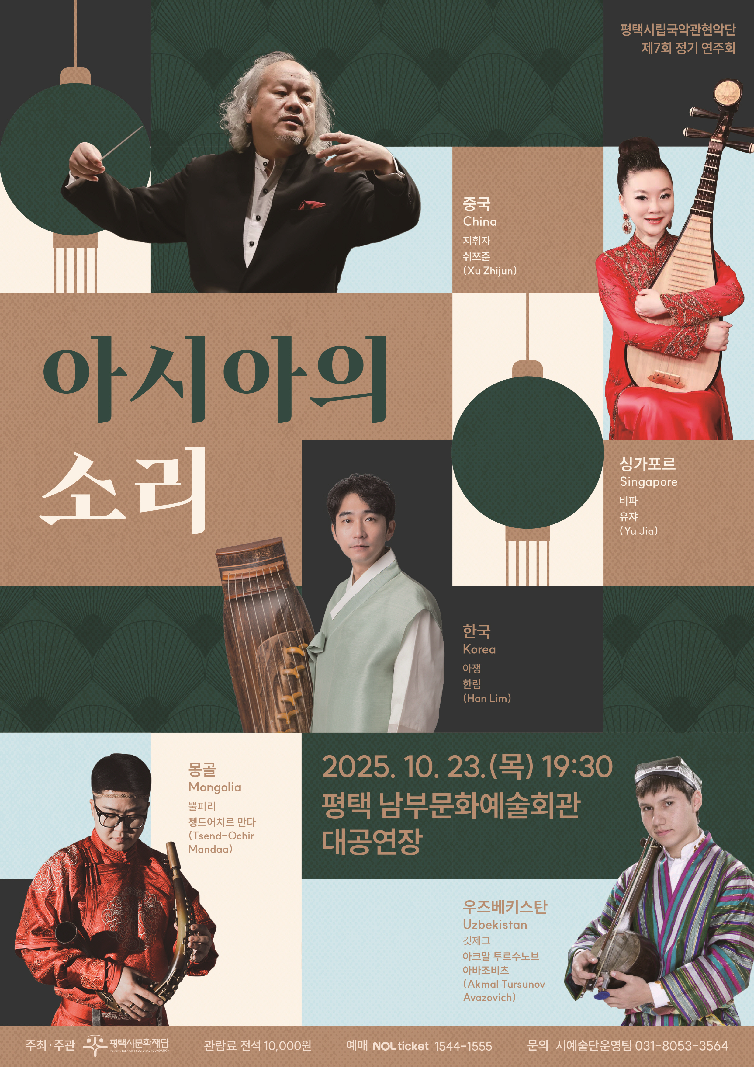 이번 공연은 한국, 중국, 몽골, 우즈베키스탄 등 아시아 각국의 전통음악과 현대 국악관현악이 조화를 이루며, 문화예술을 통해 아시아의 정서와 교감을 느낄 수 있는 무대이다.