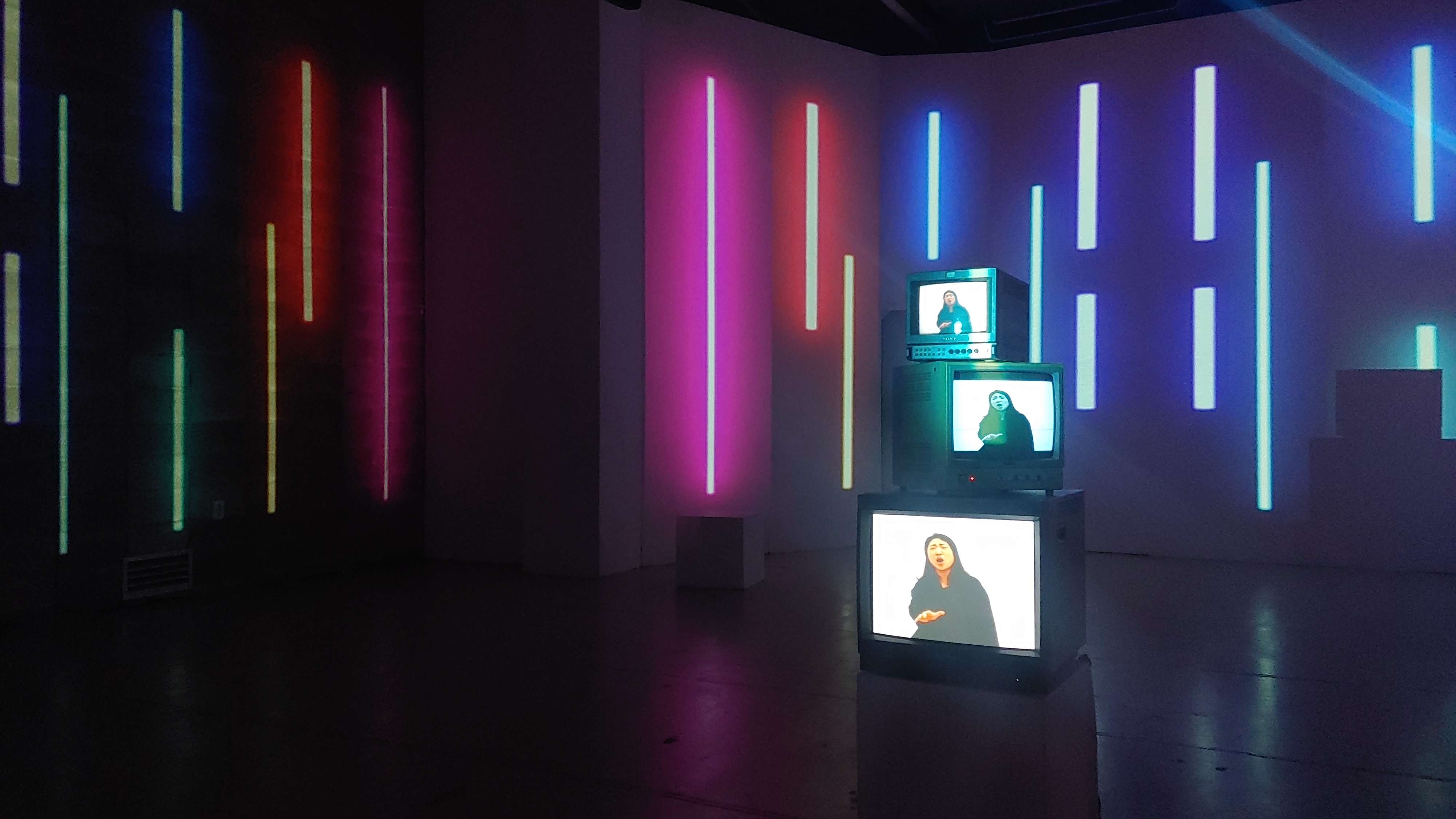 관람을 위해 연희동 주택과 상가지역 한 켠 건물 지하에 위치한 연희예술극장에 들어섰다. 관객을 맞이하는 입구의 아담한 공간을 지나 좁은 문을 열자 넓은 전시공간에 미디어아트가 벽면 가득 영사되고 음악이 사방에서 들려오고 있었다.
