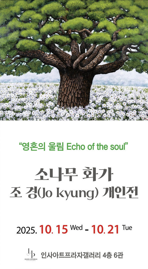[플레이뉴스 문성식기자] 사계절 푸른 소나무의 영험함을 눈부신 초록의 향연으로 채색하여 집중하게 하고, 절개의 상징 소나무를 무겁지 않은 사랑스러운 작품으로 조경작가는 2025년 10월 15일(수) ~ 10월 21일(화)까지 "영혼의 울림" 타이틀로 서울 인사아트프라자갤러리 4층 6관에서 개인전을 펼친다.