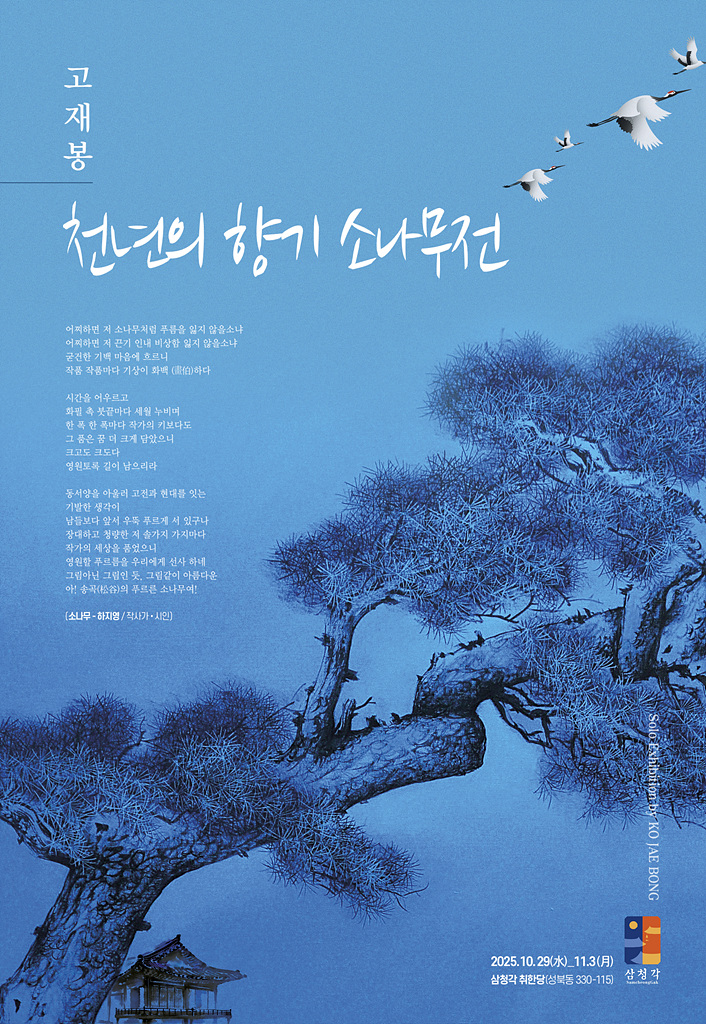 [플레이뉴스 문성식기자] 소나무의 구부러지고 휘어진 아름다운 형상을 한지에 생동감 넘치게 그려 나무 본연의 모습을 회화적 조형성으로 재해석시킨 작품으로 고재봉 작가는 오는 2025년 10월 29일(수) ~ 11월 3일(월)까지 서울 삼청각 취한당에서 '천년의 향기 소나무展' 타이틀로 개인전을 진행한다.