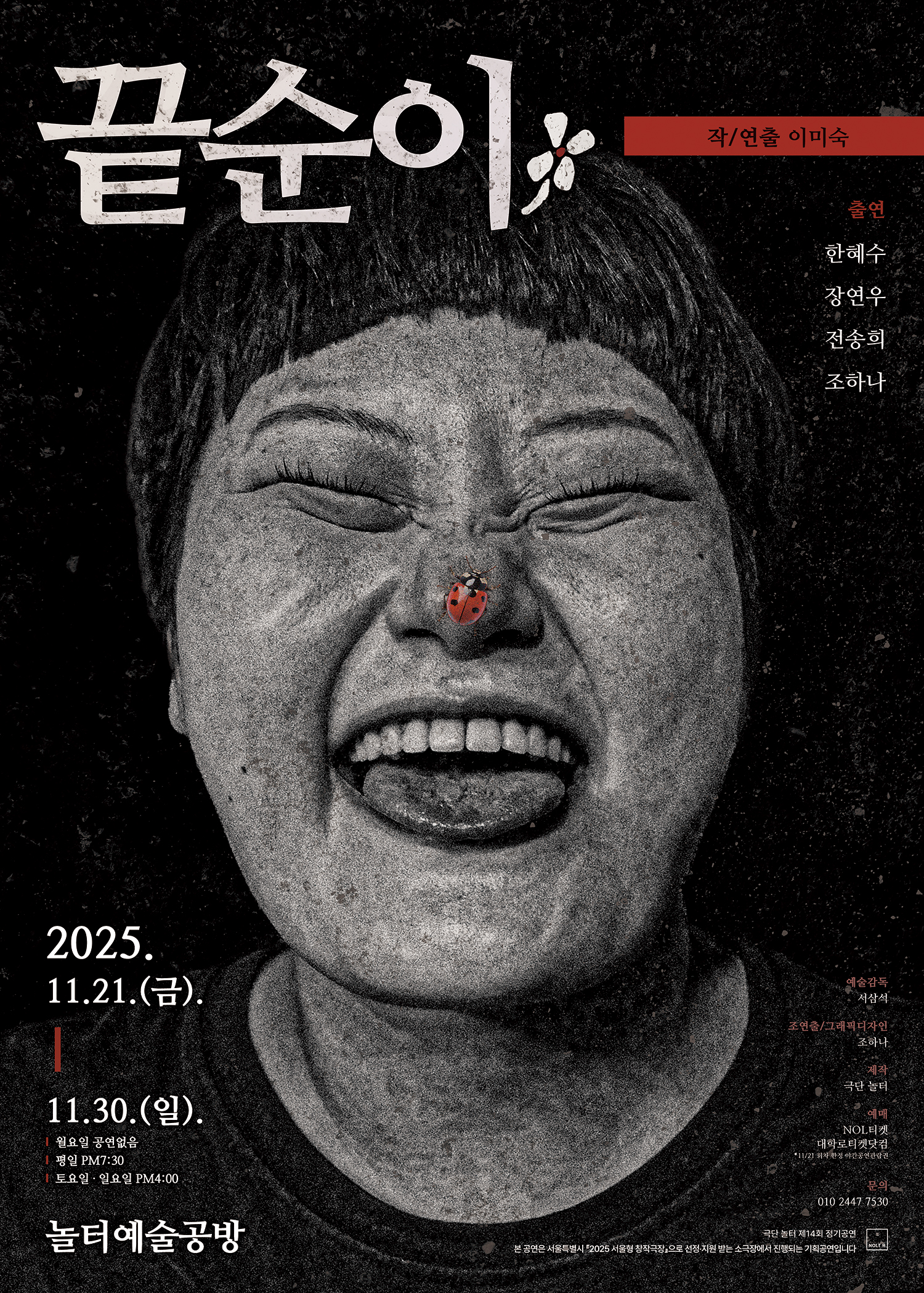 | 공연일시 | 2025년 11월 21일(금) ~ 11월 30일(일) 평일 저녁 7시 30분, 토요일.일요일 4시 – 월요일 공연 없음 |