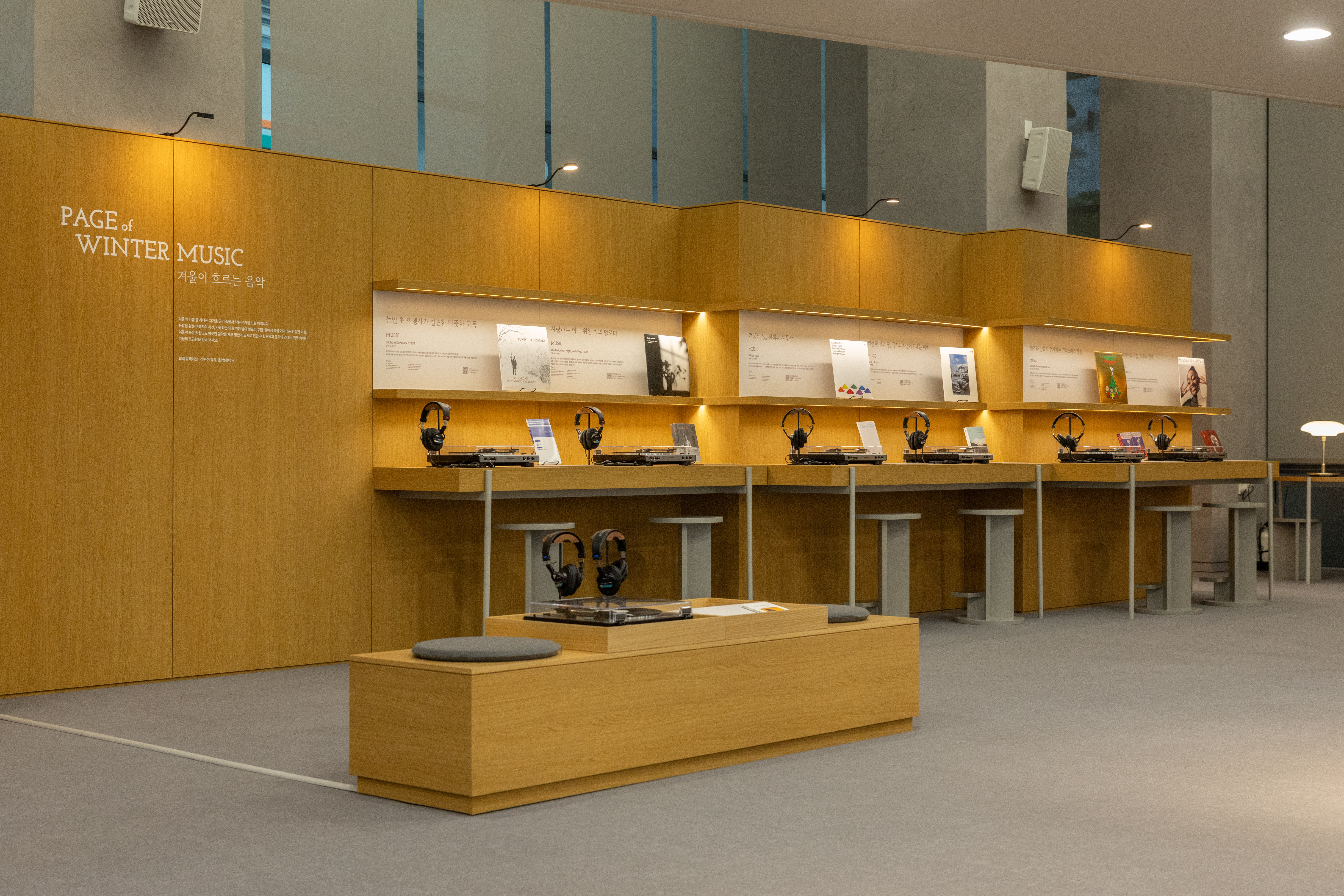 ▲음악 ‘겨울이 흐르는 음악’은 김민주 작가 겸 음악평론가의 큐레이션으로 구성된 재즈 거장들의 명반 LP 8편과 관련 도서로 겨울의 포근함을 전한다.