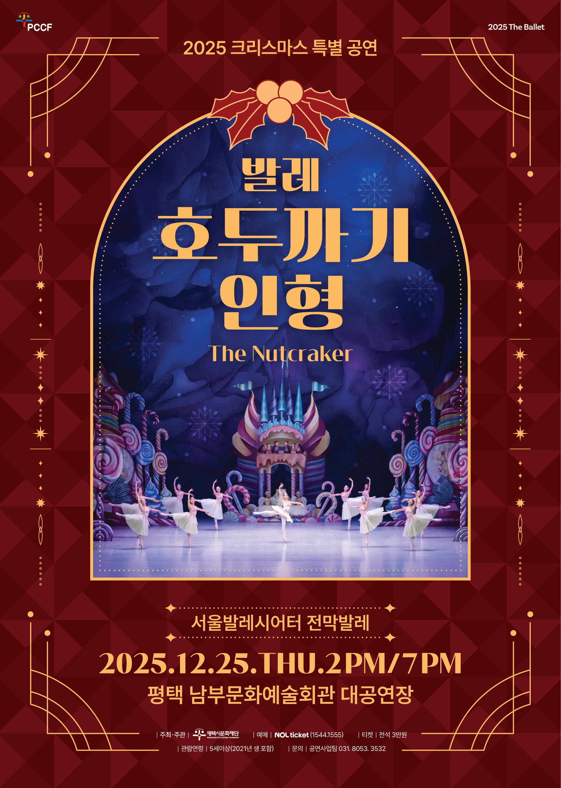 [플레이뉴스 문성식기자] (재)평택시문화재단(대표이사 이상균)은 다가오는 겨울, 온 가족이 함께 즐길 수 있는 명작 발레 〈호두까기 인형〉을 12월 25일(목) 오후 2시와 7시, 평택 남부문화예술회관 대공연장에서 선보인다.
