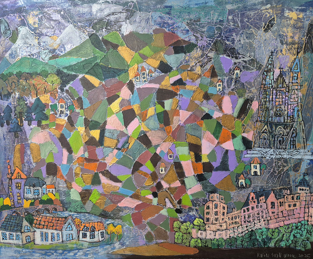 이번 전시에는 집들로 연결된 나선형의 매끄러운 곡선으로 아름답게 형성된 이색적인 도시 풍경을 마음의 안식처로 삼은 400호 크기의 대작을 선보인다.