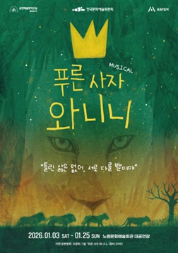 이현 작가의 베스트셀러 동화를 원작으로 한 '푸른 사자 와니니'는 1월 3일부터 25일까지 노원문화예술회관 대공연장에서 공연된다. 약육강식의 세계를 배경으로 ‘나답게 살아간다는 것’의 의미와 공존의 가치를 전하는 성장 서사를 그린다.